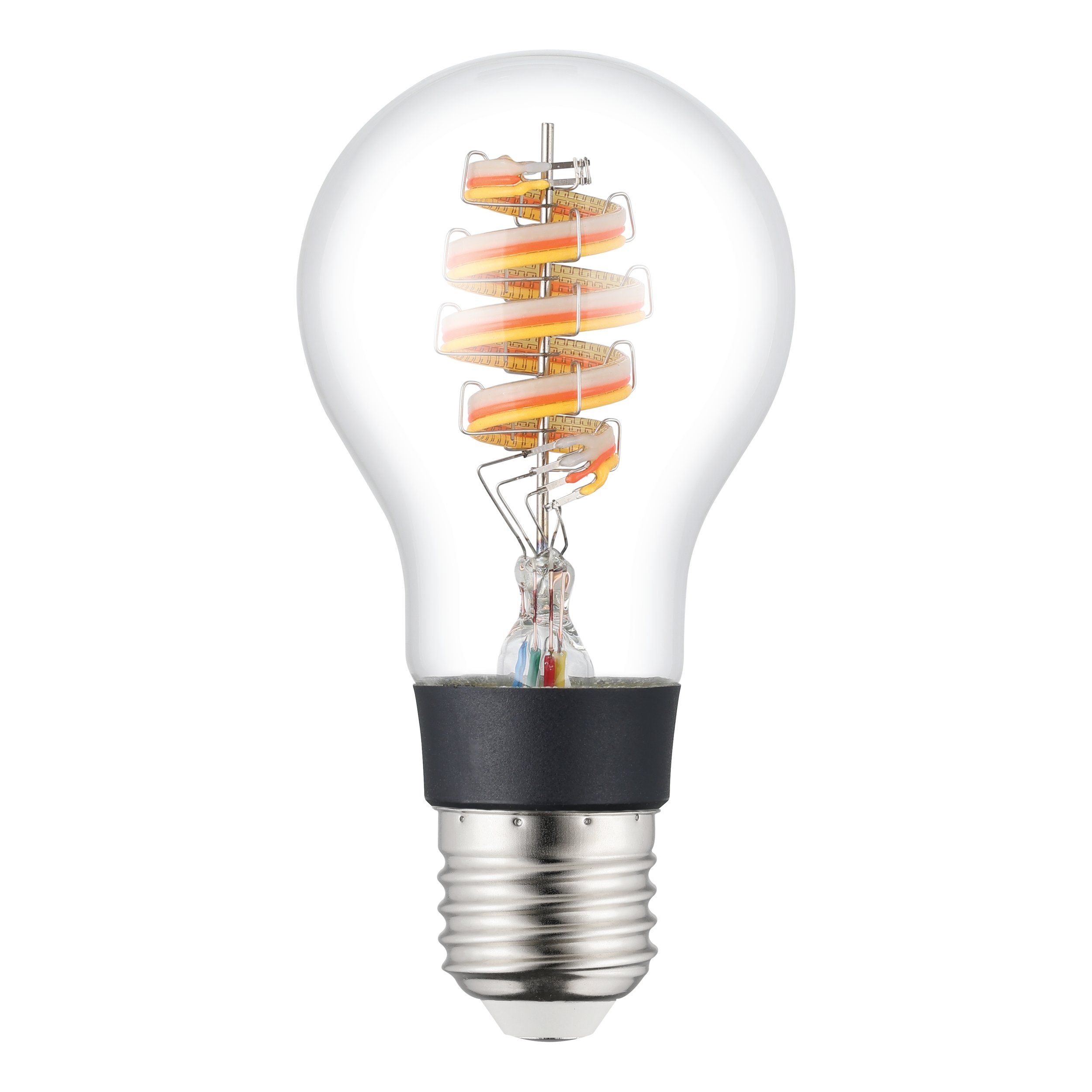 Das E27 LED Leuchtmittel (G95) aus dem Smart Home Sortiment connect.Z ist aus klarem Glas mit filamentförmigen LEDs gefertigt. Die LED-Glühbirne spendet angenehmes Licht ganz nach Ihren Wünschen. Sie haben die Wahl zwischen warmweissem, neutralweissem und kaltweissem Licht. Die Steuerung der Lampe erfolgt via kostenloser App (AwoX Home Control) und ermöglicht Ihnen den Zugriff auf weitere Komfortfunktionen wie Dimmen, Timer, Anwesenheitssimulation und vielen mehr. Die Ansteuerung des Leuchtmittels erfolgt über Bluetooth sowie ZigBee 3.0 und ermöglicht zudem die Steuerung über kompatible Sprachassistenten. Mit Hilfe einer separat erhältlichen Bridge ist es Ihnen möglich auch smarte ZigBee 3.0 Leuchten anderer Hersteller in das System zu integrieren (Bitte prüfen Sie hierzu die technische Anforderung des jeweiligen Produkts). Zusätzlich lässt sich das smarte Leuchtmittel auch über die separat erhältliche Fernbedienung steuern. Der Tausch Ihrer herkömmlichen Leuchtmittel durch EGLO connect.Z Leuchtmittel ermöglicht Ihnen nicht smarte Leuchten smart werden zu lassen und in das System einzubinden.