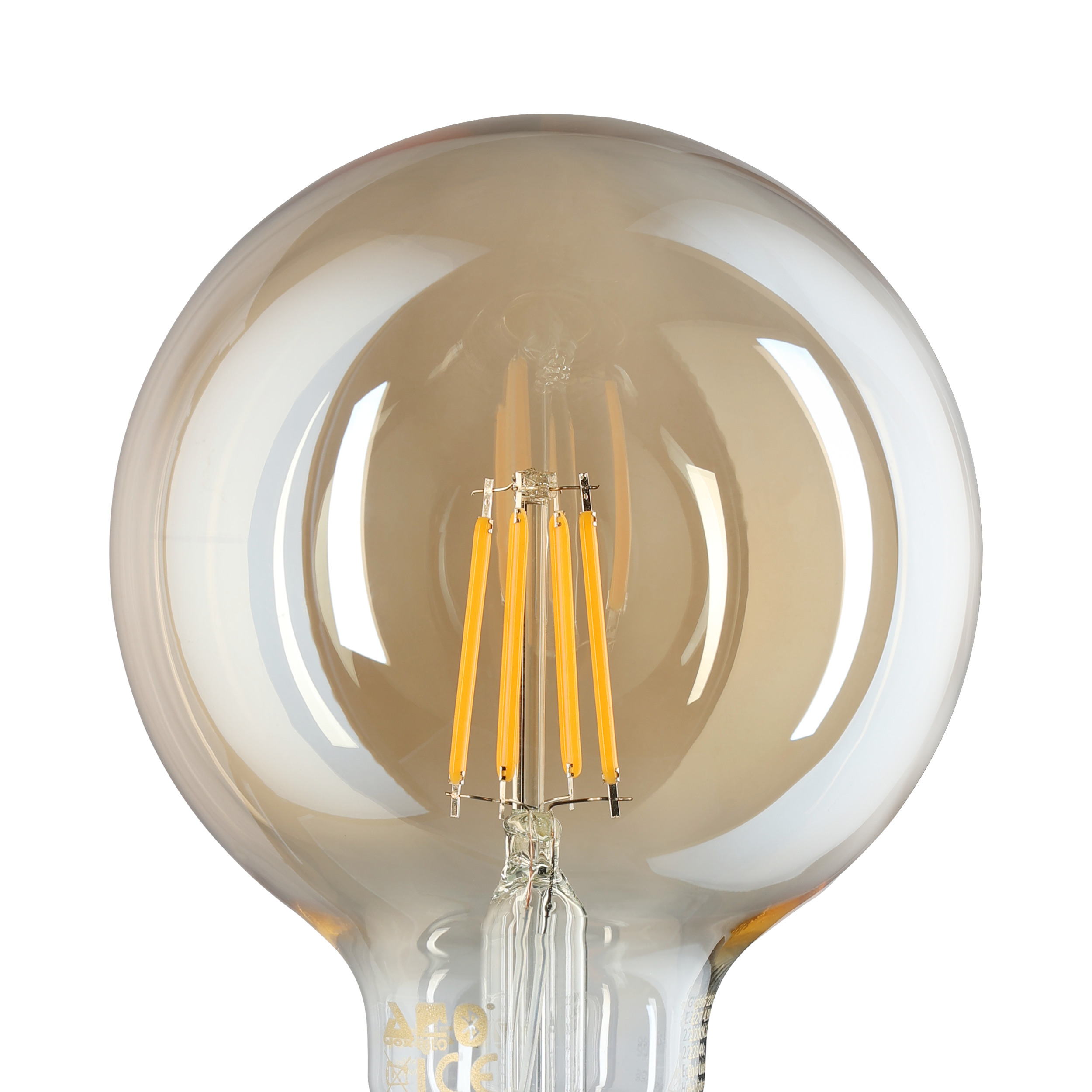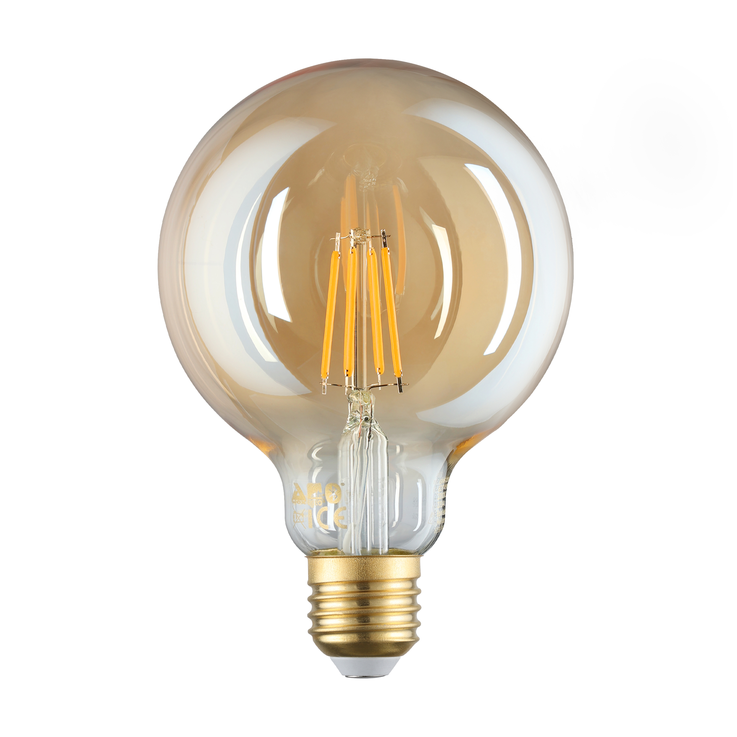 Das E27 LED Leuchtmittel (G95) aus dem Smart Home Sortiment connect.Z ist aus amberfarbenem Glas mit filamentförmigen LEDs gefertigt. Die LED-Glühbirne spendet angenehmes, warmweisses Licht und lässt sich via kostenloser App (AwoX Home Control) steuern. Diese ermöglicht Ihnen den Zugriff auf weitere Komfortfunktionen wie Dimmen, Timer, Anwesenheitssimulation und vielen mehr. Die Ansteuerung der Lampe erfolgt über Bluetooth sowie ZigBee 3.0 und ermöglicht zudem die Steuerung über kompatible Sprachassistenten. Mit Hilfe einer separat erhältlichen Bridge ist es Ihnen möglich auch smarte ZigBee 3.0 Leuchten anderer Hersteller in das System zu integrieren (Bitte prüfen Sie hierzu die technische Anforderung des jeweiligen Produkts). Zusätzlich lässt sich das smarte Vintage-Leuchtmittel auch über die separat erhältliche Fernbedienung steuern. Der Tausch Ihrer herkömmlichen Leuchtmittel durch EGLO connect.Z Leuchtmittel ermöglicht Ihnen nicht smarte Leuchten smart werden zu lassen und in das System einzubinden.