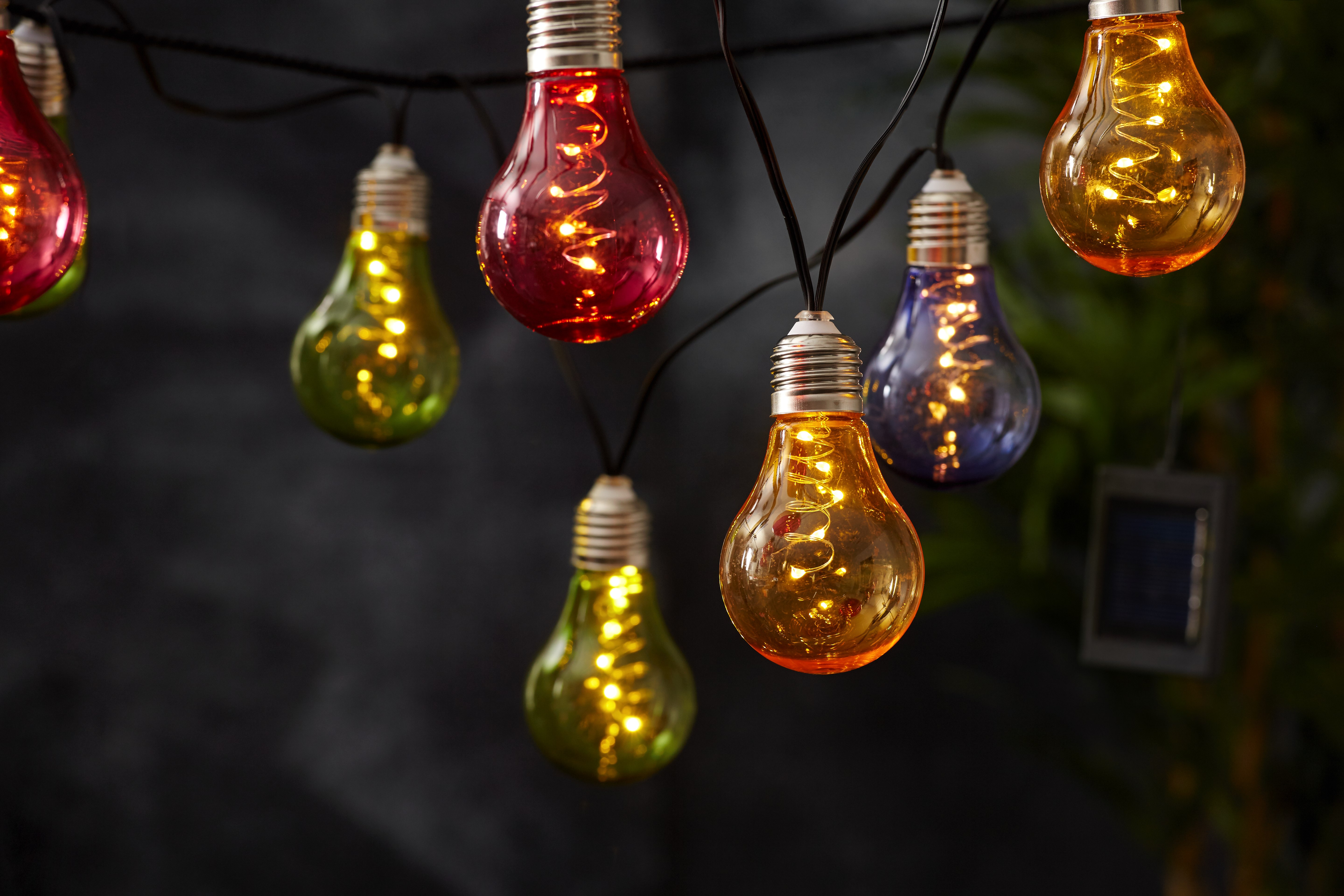 Bringen Sie Stimmung in Ihren Garten mit dieser farbenfrohen LED-Lichterkette aus der SOLAR-Serie. Er ist 1,6 m lang und enthält 10 Lichtquellen mit 0,03 W, die 10 cm hoch und 6 cm breit sind. Die Lichterkette besteht aus silberfarbenem Stahl und Kunststoff in verschiedenen Farben. Mit einem Wert von 2700K ist die Girlande ideal, um Atmosphäre in Ihrem Garten zu schaffen, da sie ein warmweißes Licht abstrahlt und verschiedene Farben enthält. Darüber hinaus enthält die Girlande ein kleines Solarpanel, das tagsüber aufgeladen wird, sodass Sie keinen Strom benötigen. Auf diese Weise können Sie es dort platzieren, wo Sie es benötigen. Atmosphäre garantiert!