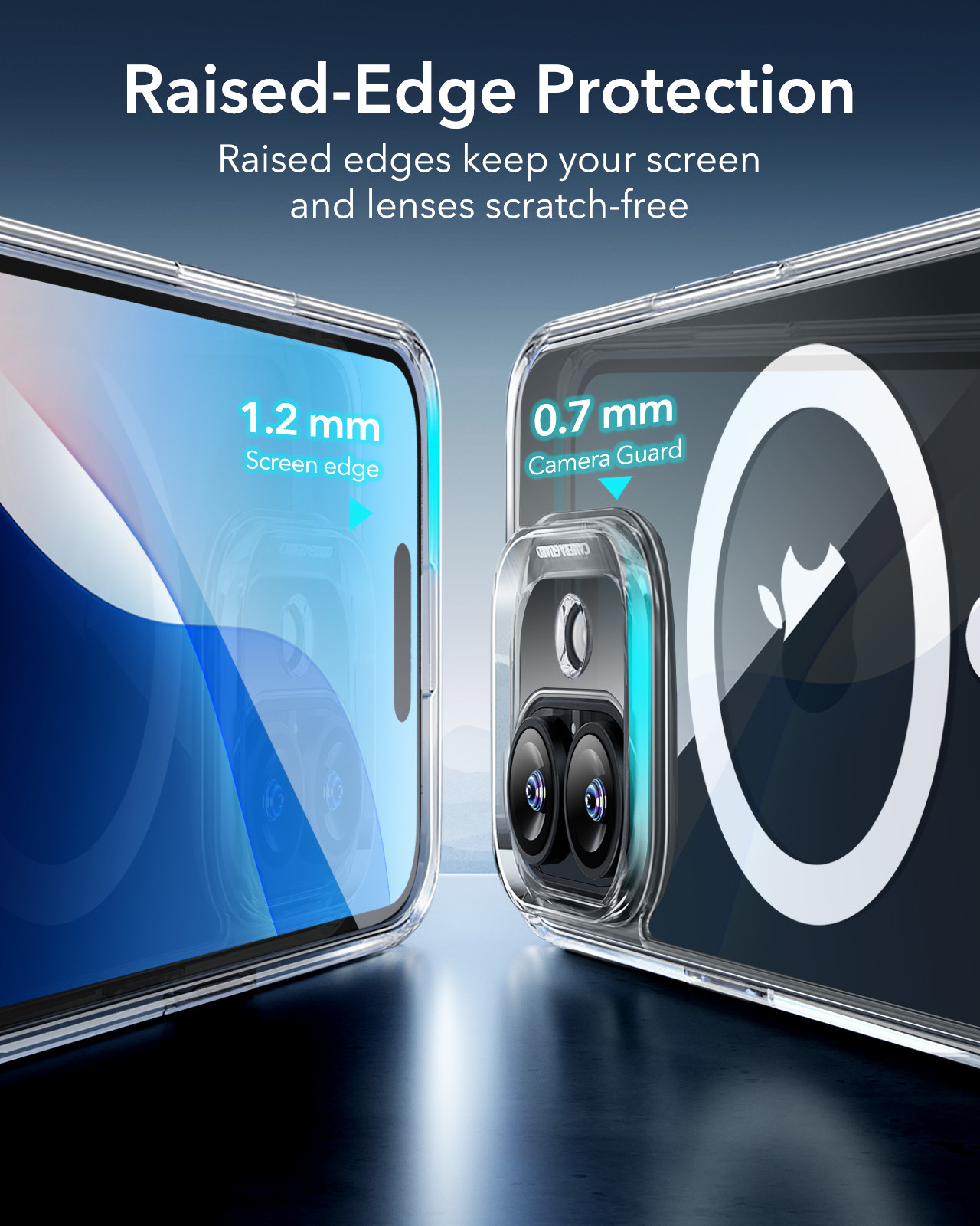 - Erhöhter Schutz: Erhöhte Bildschirmränder und der Camera Guard Objektivrahmen bieten verbesserten Kratzschutz