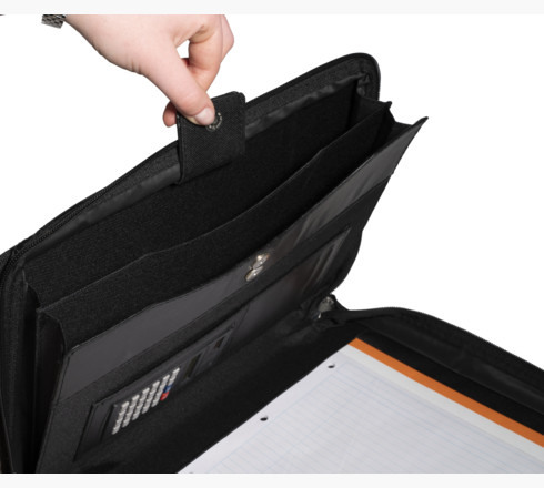 Exactive, die Marke für eine innovative und mobile Ablage. Mit vielseitigen und funktionellen Produkten, an die neuen Formen der Or ganisation und Ablage angepasst. Leicht und einfach zu transportieren, für den intensiven und täglichen Gebrauch. Die Konferenzmappe mit Blockhalter ist praktisch und strapazierfähig und ist dank des Reissverschlusses immer gut verschlossen. Innen ist sie mit einer Doppeltasche mit Druckknopfverschluss für A4 Dokumente, Stiftehalterung und Visitenkartenfach ausgestattet. Ideal zum Erstellen und Aufbewahren von Notizen. Inklusive eines linierten A4-Schreibblocks und eines Taschenrechners mit Solarzellen.