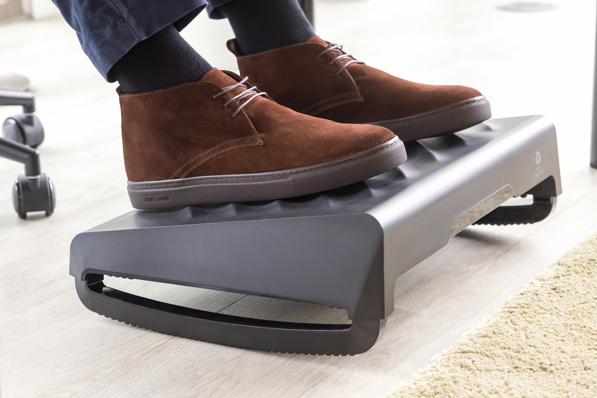 Stützen Sie Ihre Füsse und fördern Sie die Bewegung für eine gute ergonomische Haltung, die den ganzen Tag über mehr Komfort verspricht