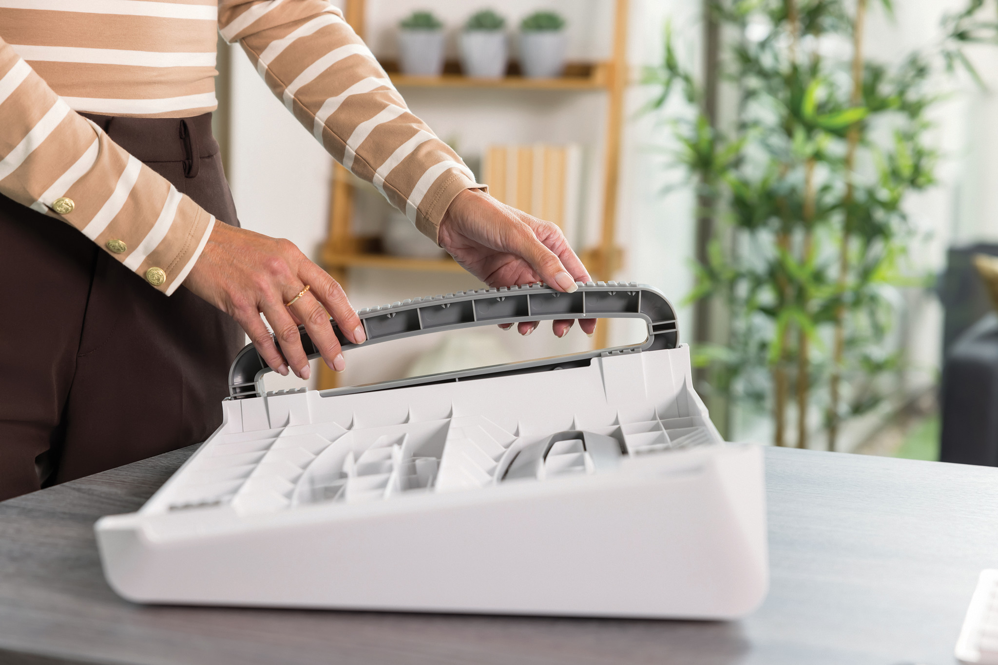 - Portables Design, das leicht zu tragen, aufzustellen, einzustellen und zu verstauen ist, - ideal für hybride Arbeitsumgebungen
