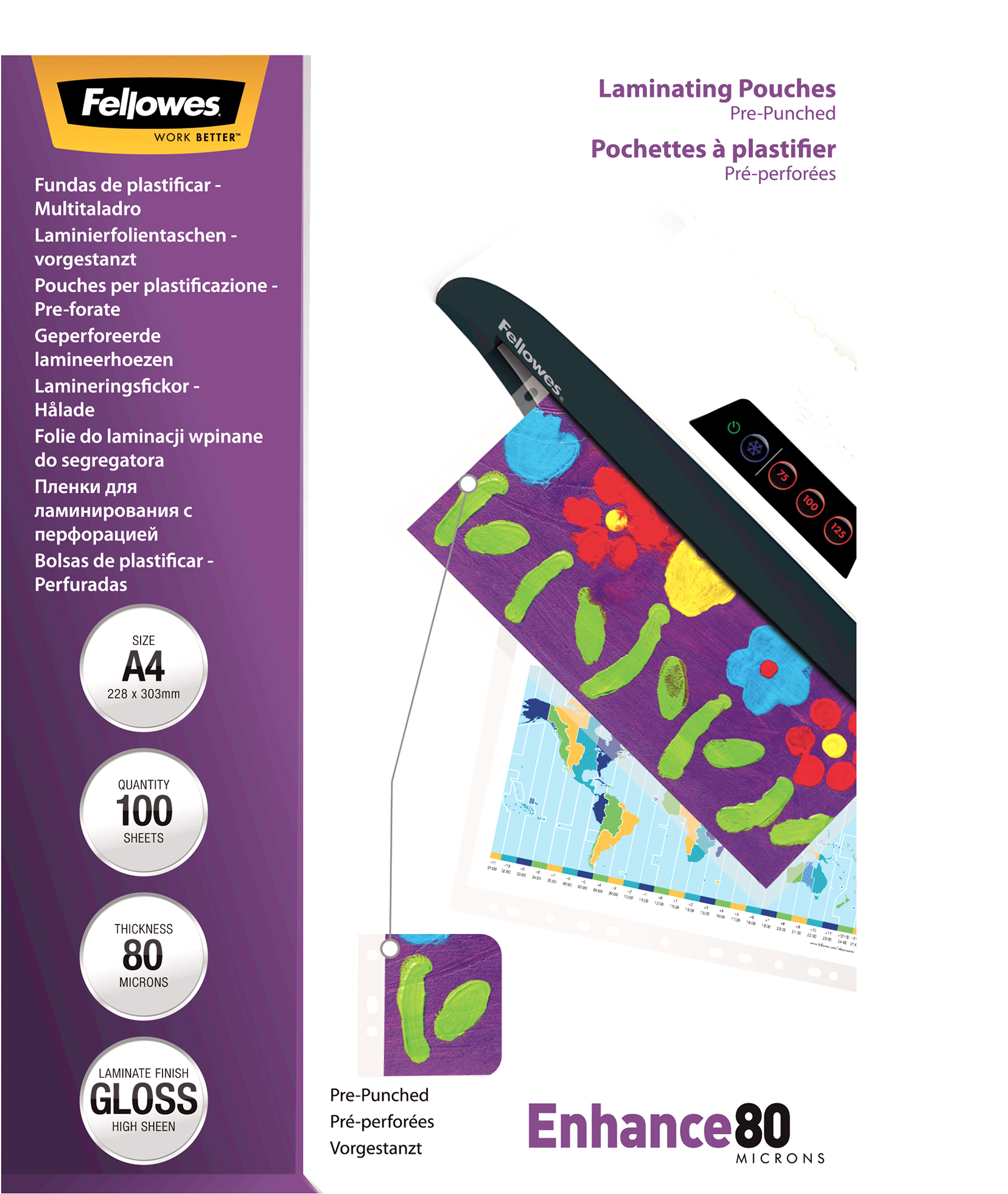 Produktinformationen "FELLOWES Laminierfolien Enhance 80g A4 5452502 gelocht 100 Stück"