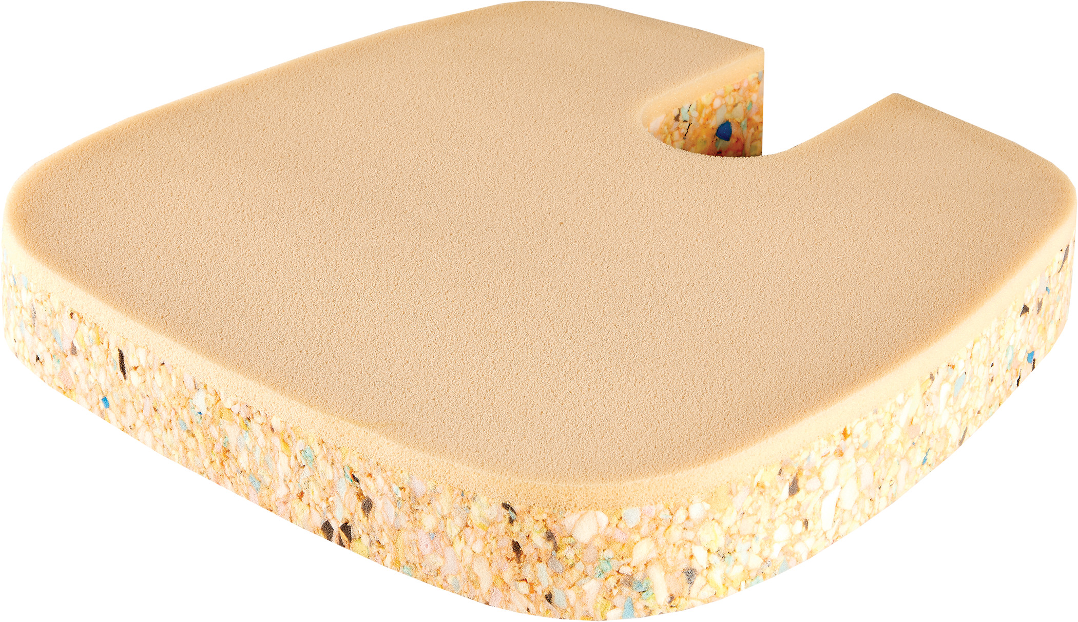 - Der Schaumstoff besteht zu 93 % aus Pre-Consumer recyceltem Material.