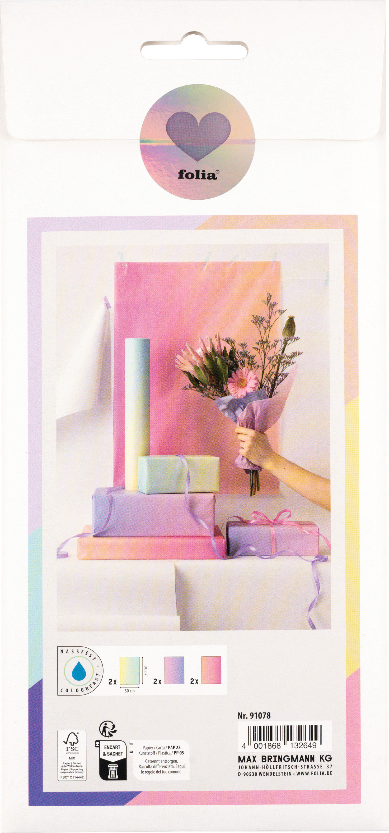 Wir haben für jede Saison und Fasson den passenden Farbmix. Ob festlich, neon oder pastellig irisierend – dem seidig zarten Papier widersteht man nur schwer.3 Designs sortiert / designs assorted20 g/m26 Bogen / sheets gefalzt auf / folded to 12,5 x 25 cm