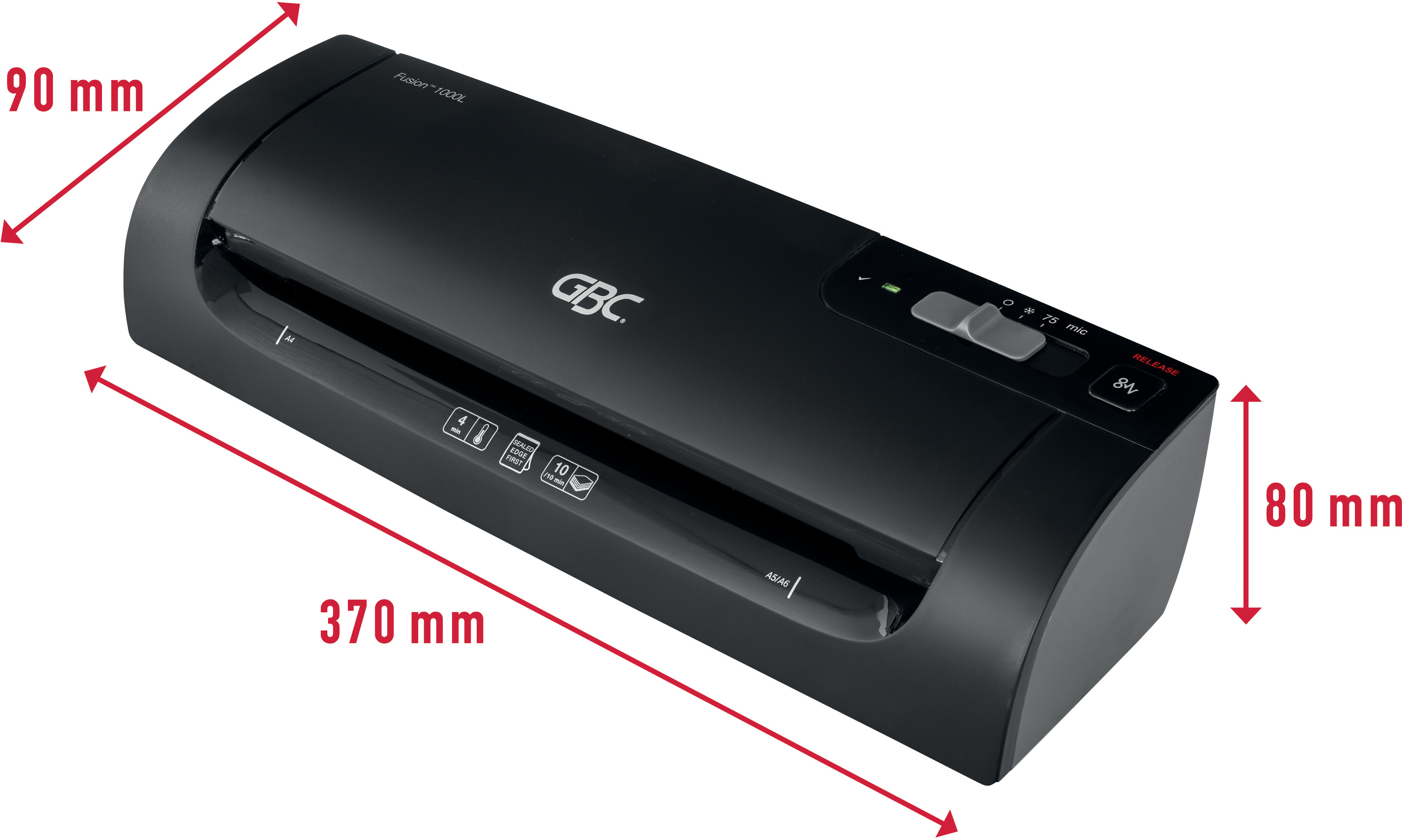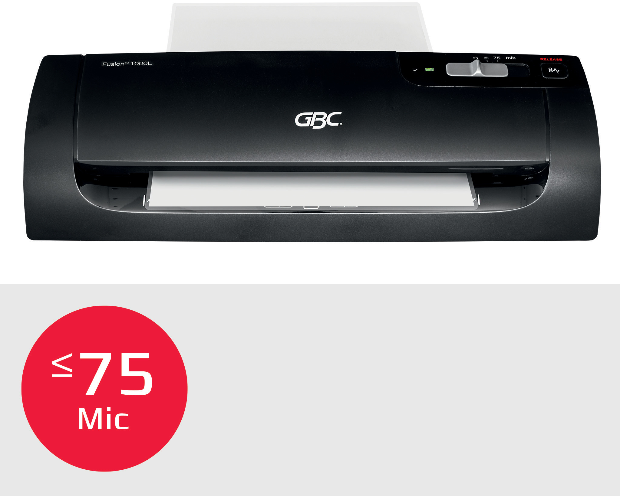 Einfacher geht's nicht! Das schicke, kompakte GBC FusionTM Laminiergerät 1000L ist ideal für den Einsatz in Home Offices oder kleinen Büros. Es liefert auf Knopfdruck perfekte Ergebnisse. Eine grüne Leuchte zeigt an, wenn das Gerät nach nur vierminütiger Aufwärmzeit betriebsbereit ist. Das FusionTM 1000L laminiert mit Standardfolientaschen (2 x 75 Mikron) in weniger als einer Minute.