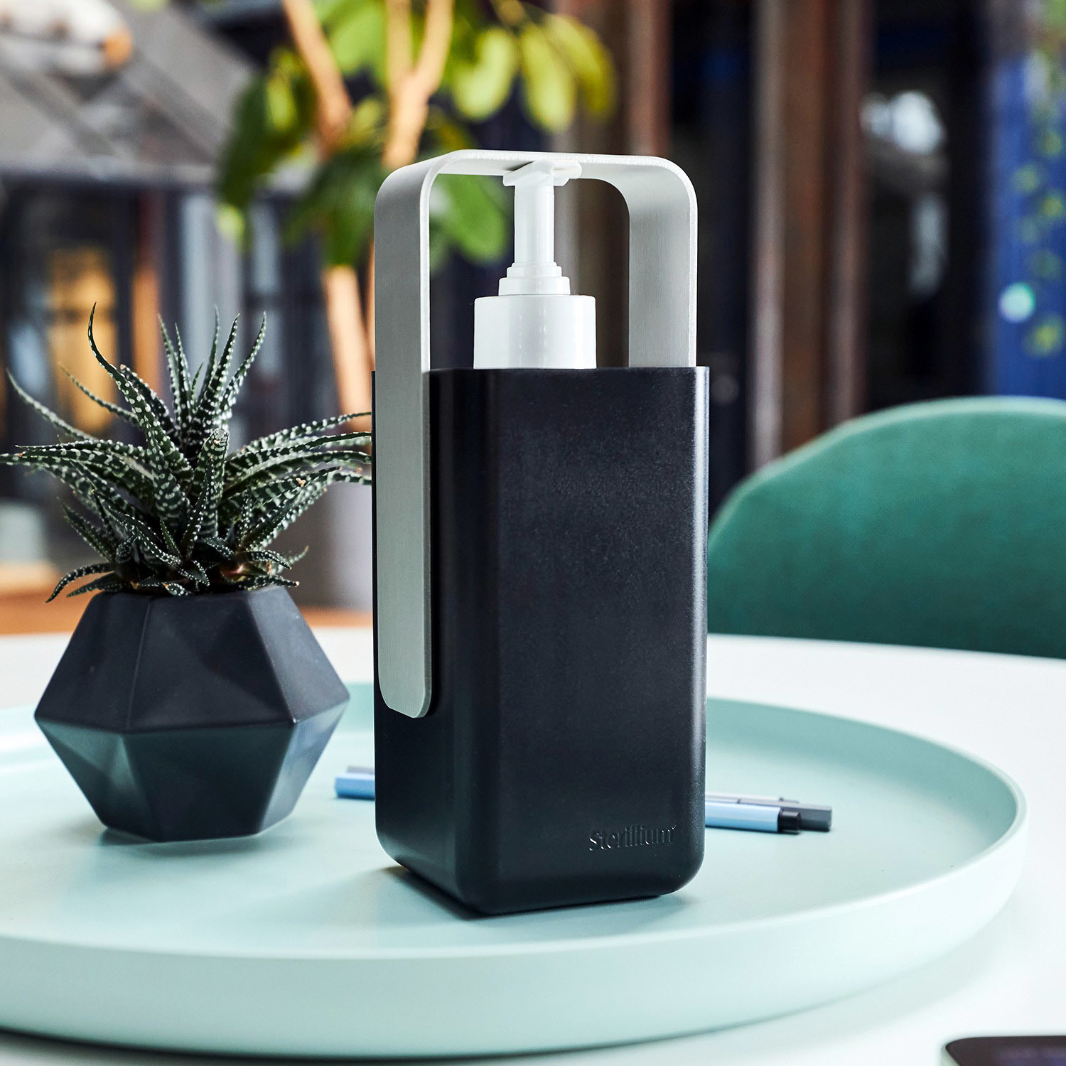 Hi, ich bin Leon. Ich bin ein Dispenser mit einem Aluminiumbügel für die Sterillium 475 ml Flasche. Ich bin für Menschen, die Stil banalen Trends vorziehen. Für Minimalisten. Für Kosmopoliten. Für dich. Ein einzigartig designter Dispenser, auf deine Bedürfnisse angepasst: Leon ist aus mattem Hartplastik und verfügt über einen Bügel aus Edelstahl. Er ist der elegante, wertige Kosmopolit. Stylisch, aber nicht zu cool. Klare Linien, aber nicht zu minimalistisch. Genau richtig, genau für dich. In genau der richtigen Farbe: Schwarz. Leon macht Sterillium zum Hingucker in deiner Wohnung!