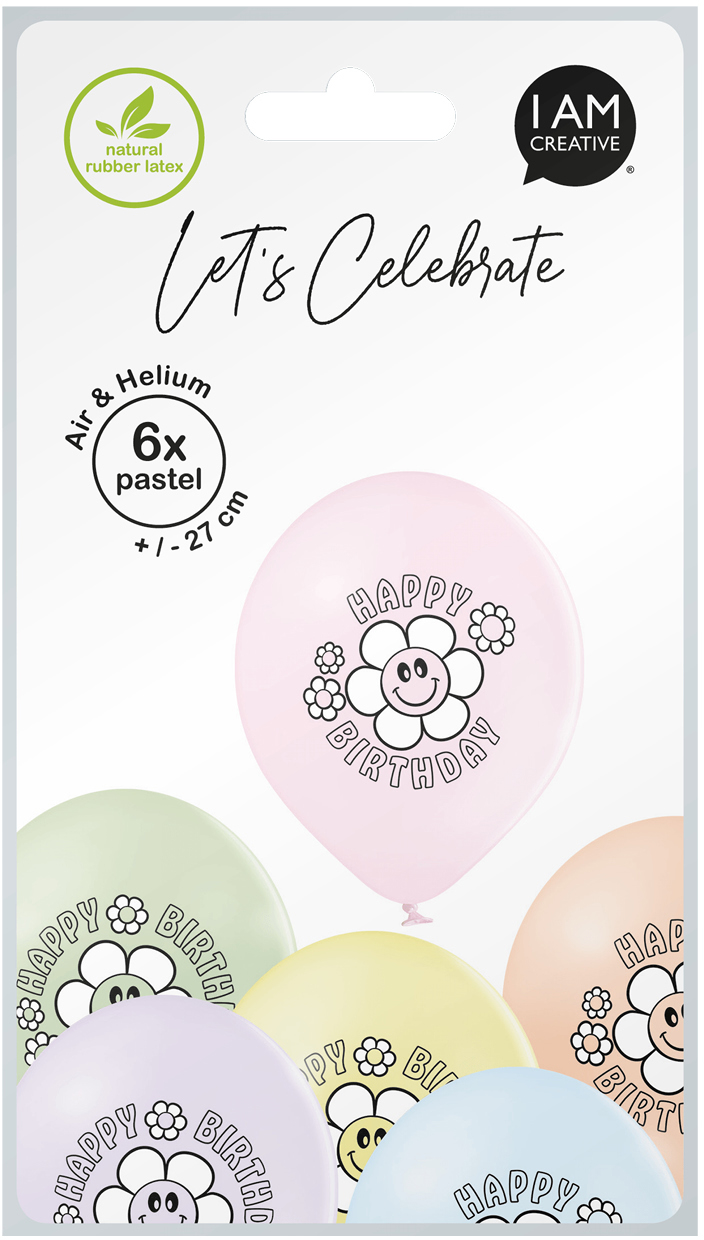 I AM CREATIVE Ballons Happy Birthday 27cm 1000-1070 pastell 6 Stück