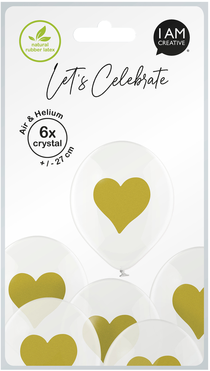 I AM CREATIVE Ballons goldenes Herz 27cm 1000-1059 transparent 6 Stück