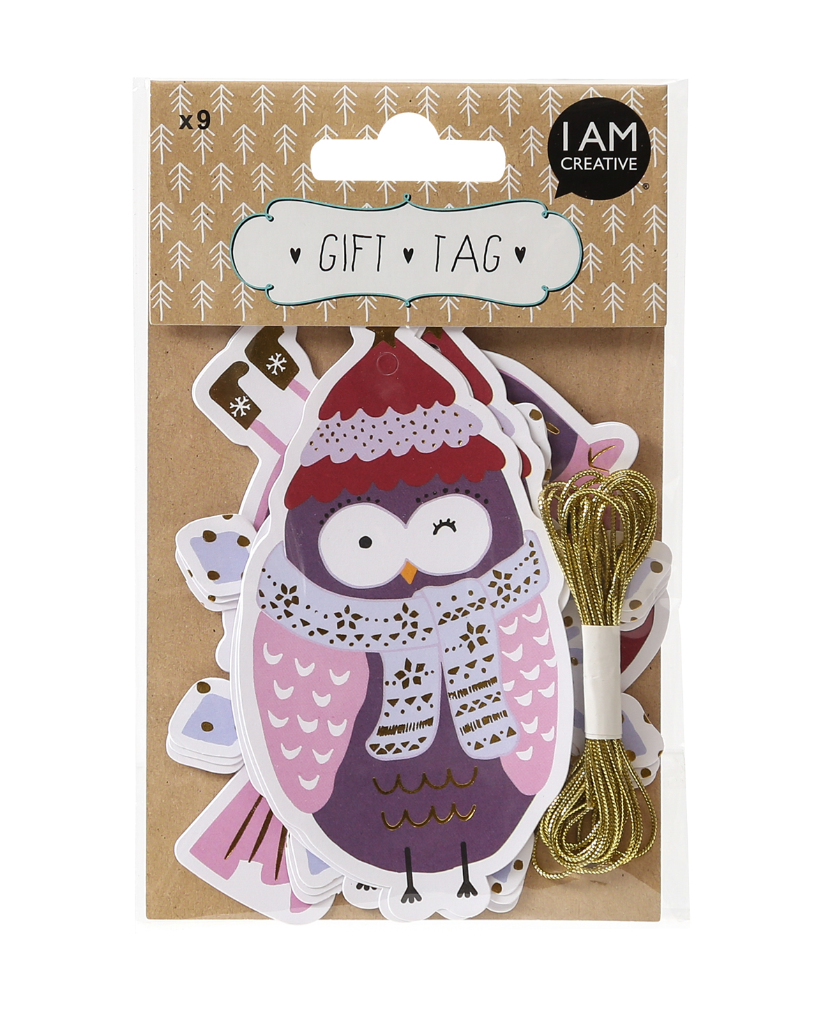 I AM CREATIVE Geschenkanhänger X-mas 4088.96 Eule, Vogel & Kugel 9 Stück