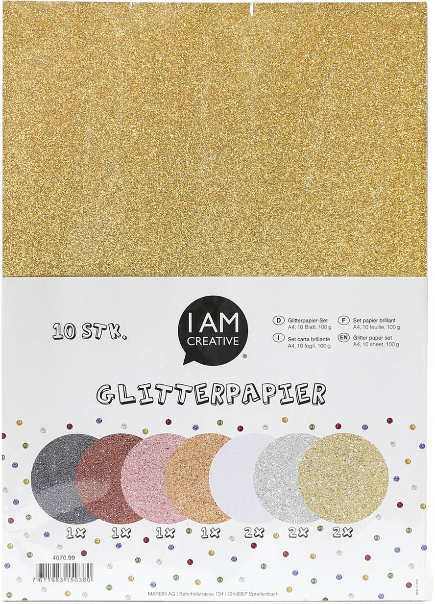 I AM CREATIVE Glitterpapier A4 4070.99 multicolor, 100g 10 Stück