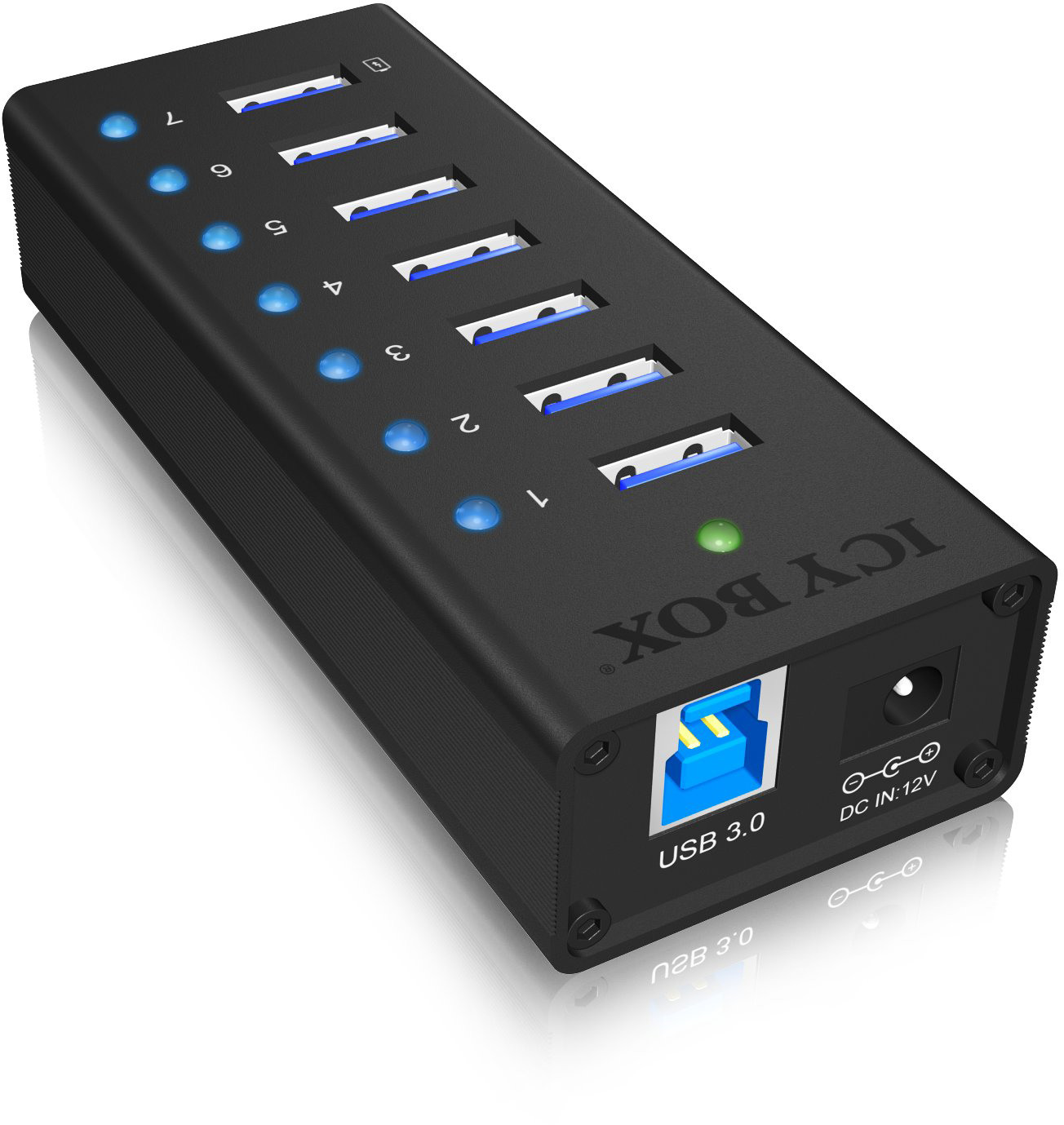 ICY BOX 7 Port Hub USB 3.0 IB-AC618 robust alluminium black