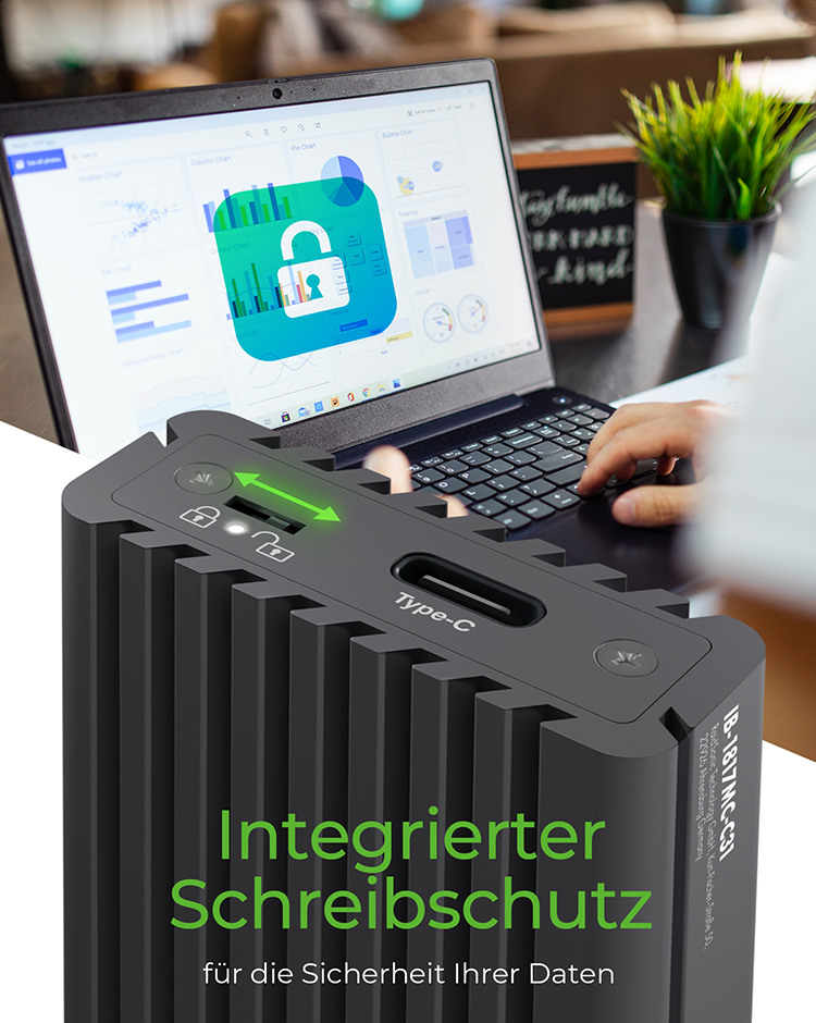 - Wer sich für ein tolles Gehäuse mit hoher Datenkapazität entscheidet, der will seine Daten auch gut gesichert wissen. Daher ist das IB-1817MC-C31 mit einem Schreibschutz ausgestattet. Mit einem kleinen mitgelieferten Werkzeug wird ein Schalter zwischen sc
