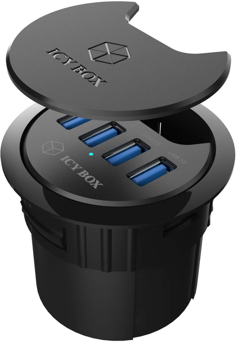 Produktinformationen "ICY BOX In-Desk USB Hub 60 mm black IB-HUB1403 4x USB 3.0 Typ A"