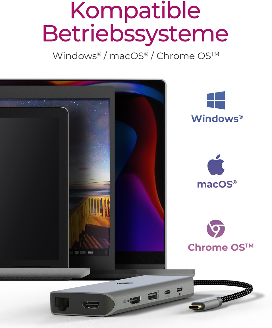 - BETRIEBSSYSTEME Unser Gerät funktioniert reibungslos mit Windows, macOS und Chrome OS. Keine Treiberinstallation erforderlich, wenn Ihr Hostcomputer diese Technologie unterstützt. Einfach anschliessen und loslegen