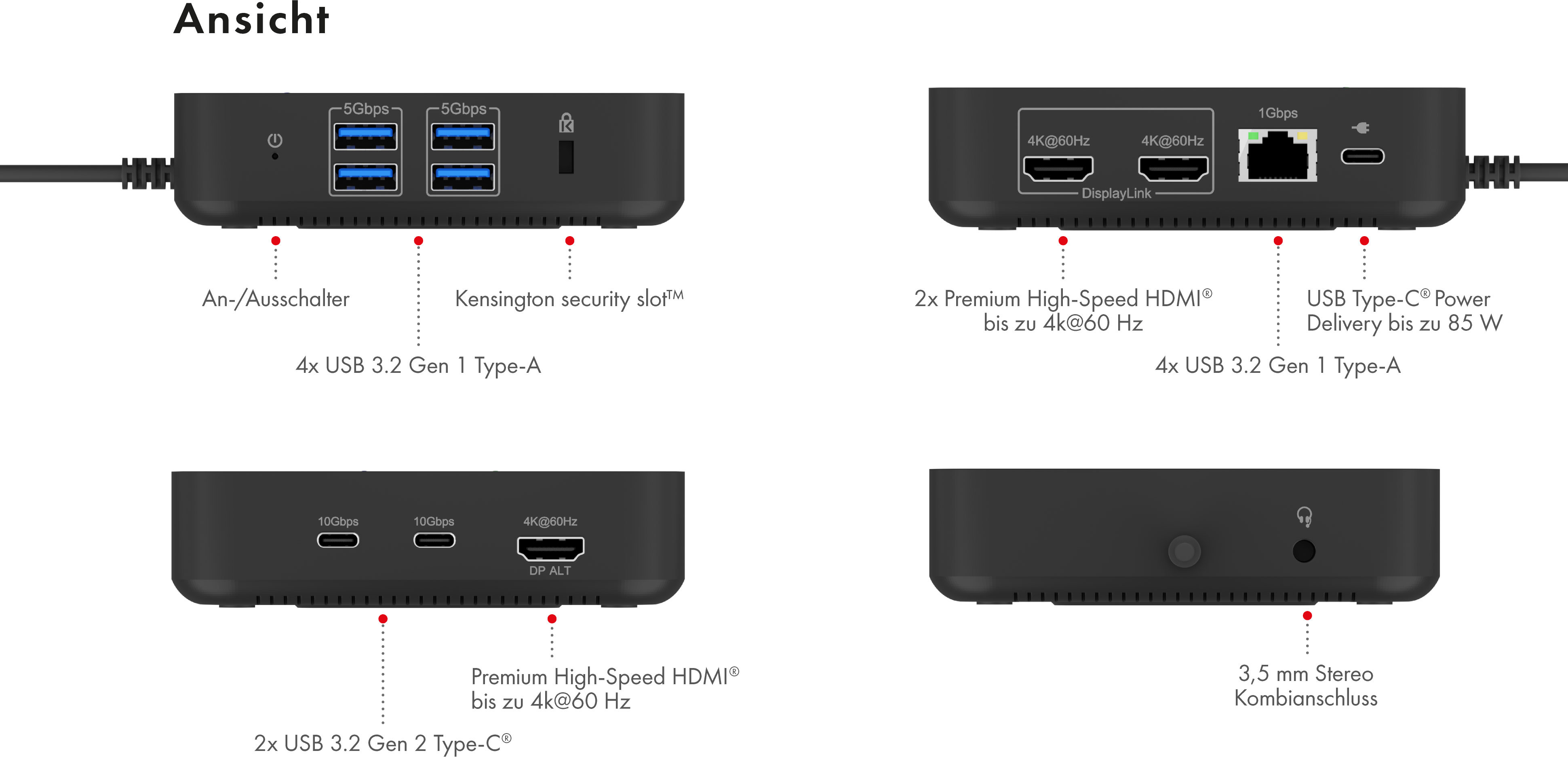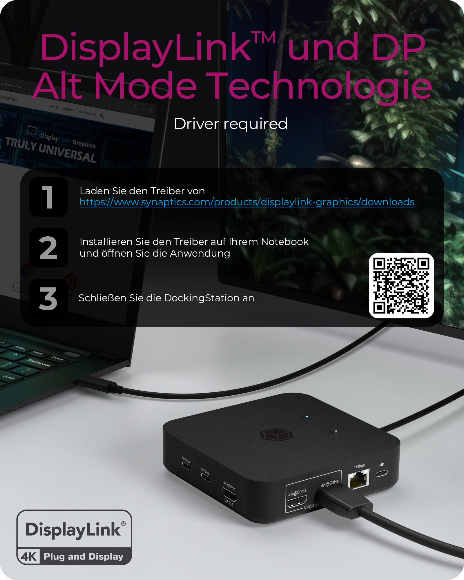 | Video-Anschlüsse: | DisplayLink ® und DP Alt Mode |