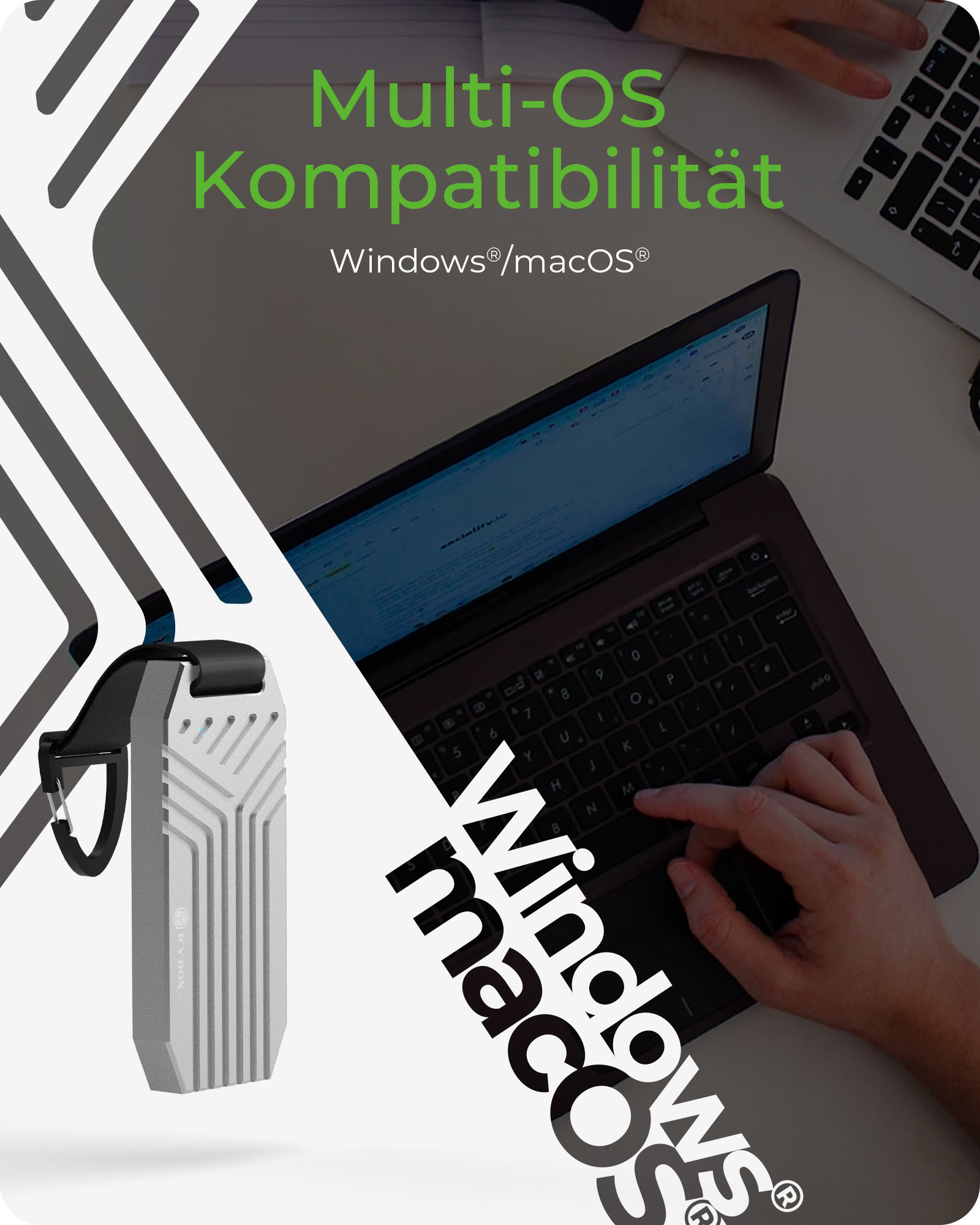- Multi-OS-Kompatibilität - Bietet konsistente Leistung mit Windows und macOS, wodurch es eine zuverlässige Lösung für die Verbindung verschiedener M.2 NVMe SSDs über Plattformen hinweg darstellt.