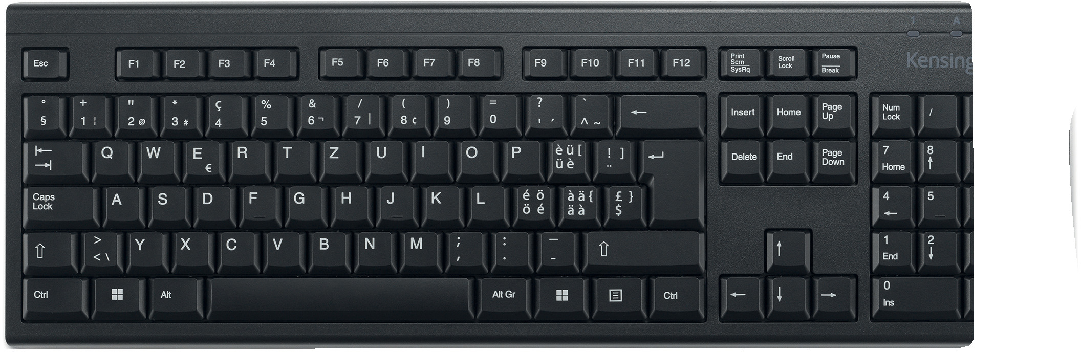 - Full-Size-Tastatur mit 6 Tastenreihen und einem Nummernblock.