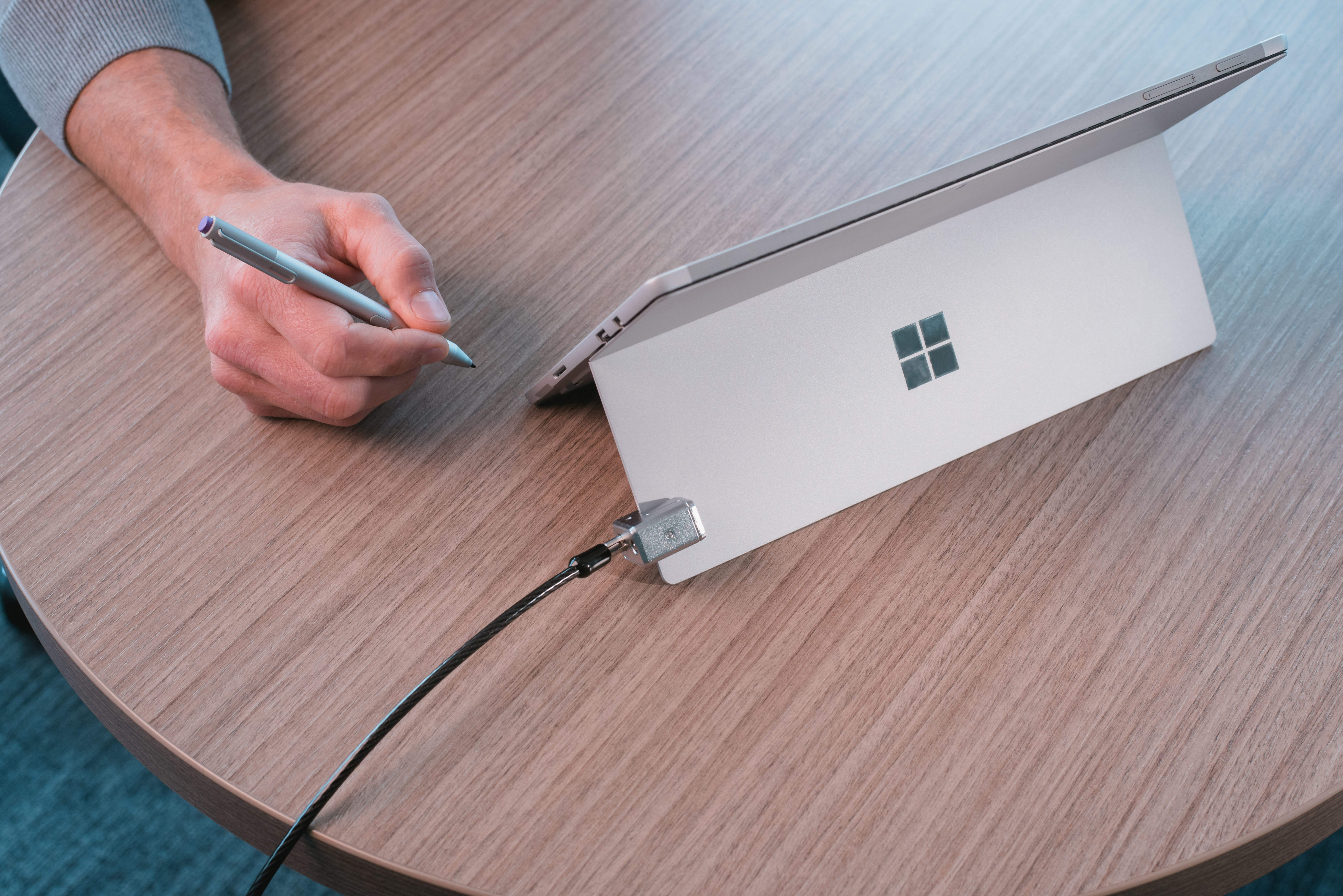 - Der nicht-invasive Schliessmechanismus bietet eine benutzerfreundliche Sicherungslösung ohne Änderungen am Gerät, bei der die Ästhetik und die Hardwaregarantie von Surface Pro & Surface Go erhalten bleiben.