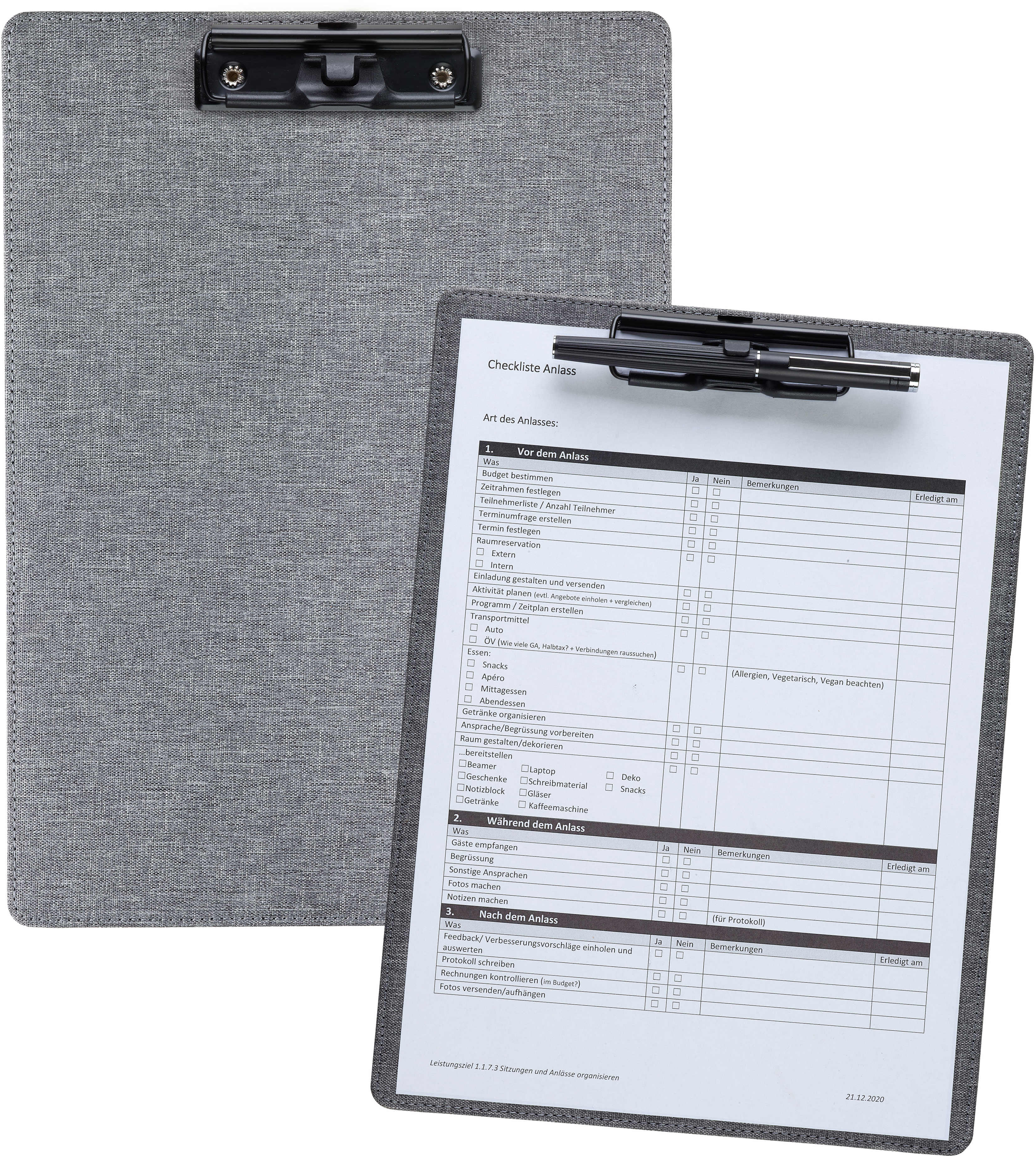 Dieses praktische Klemmbrett wird aus rezyklierten PET-Flaschen hergestellt und überzeugt mit einer aussergewöhnlichen Haptik und Optik. Das Material aus RPET ist nicht nur nachhaltig, sondern auch äusserst strapazierfähig, so dass das Klemmbrett auch nach intensiver Nutzung noch schön aussieht.
