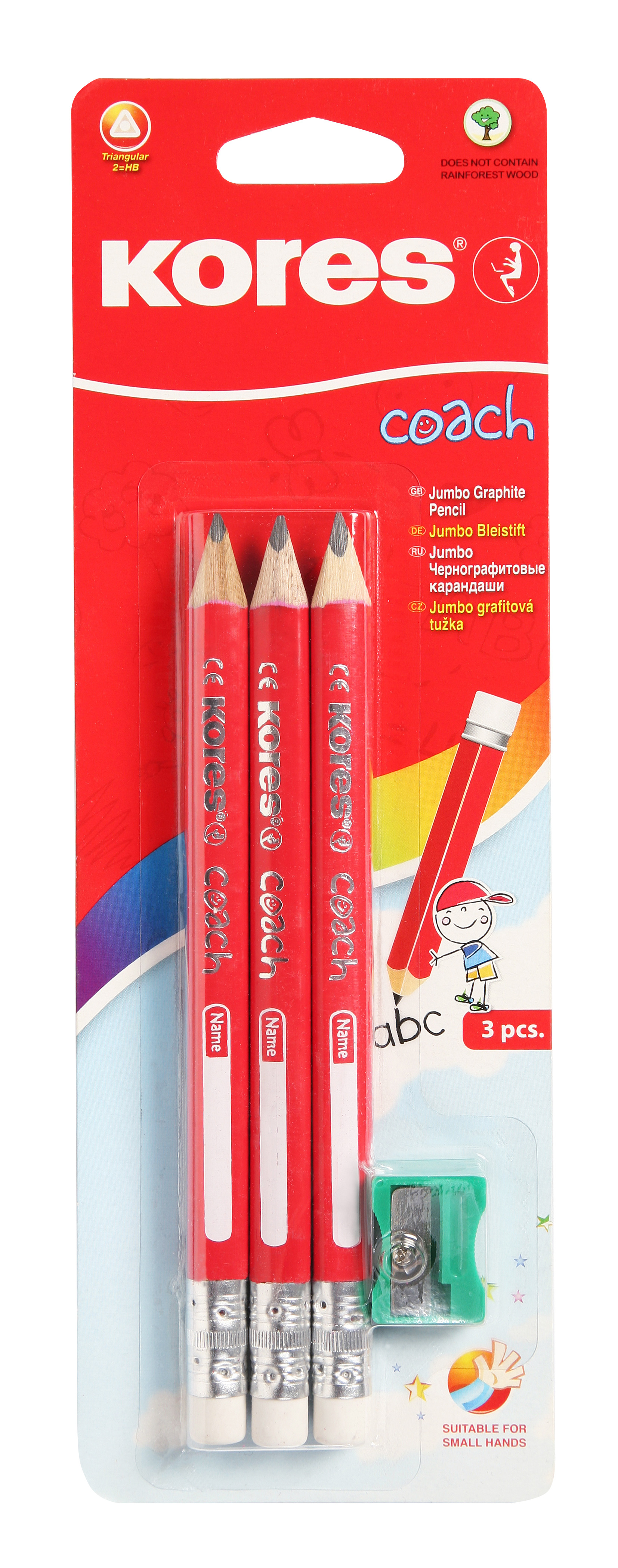 Produktinformationen "KORES COACH Bleistift HB Spitzer BB92533 3 St./weisser Radierer,3-eck."