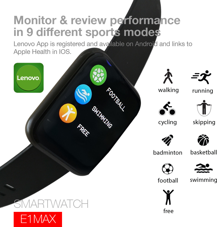 LENOVO Smartwatch E1 Max black E1Max-BK
