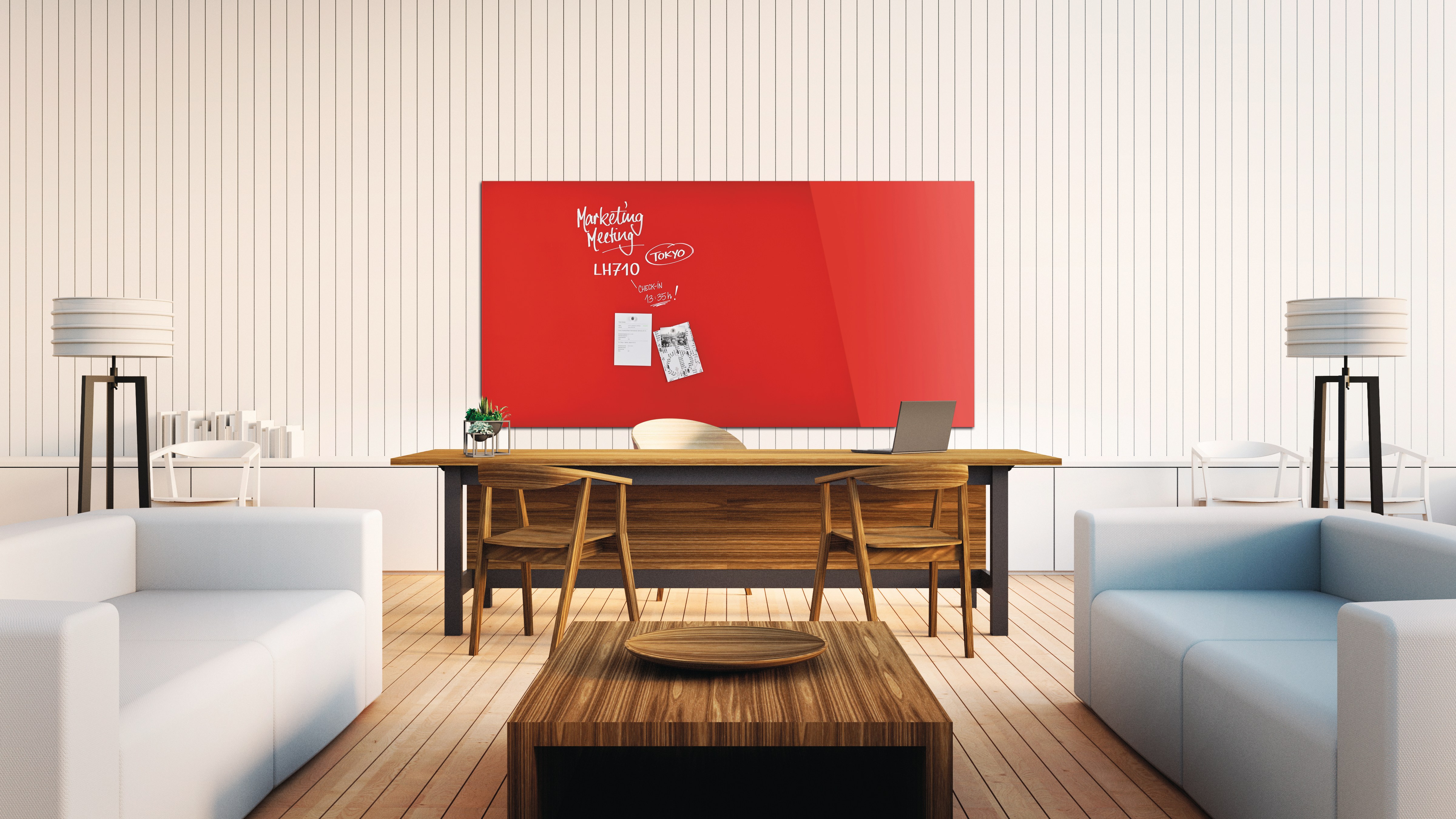 Glasboards sind die moderne, elegante Alternative zu herkömmlichen Whiteboards. Die stylischen Schreib- und Infotafeln für Büro + Privatbereich sind beschreibbar, Notizen, Fotos & Co lassen sich magnethaftend befestigen. Sie überzeugen durch das elegante + luxuriöse Erscheinungsbild mit purer Ästhetik. Gefertigt aus hochglänzendem ESG-Sicherheitsglas in Premium-Qualität, hängen sie frei schwebend vor der Wand. Die Boards lassen sich in jeder gewünschten Kombination montieren: Nebeneinander, untereinander oder im rechten Winkel zueinander. In brillant-weiss sowie den Trendfarben tief-schwarz und intensiv-rot, werden sie zum Eyecatcher an jeder Wand. Durch ihre Farbe, Form und das ansprechende Erscheinungsbild fügen sich die Glasboards perfekt in jede Inneneinrichtung ein. Mehr noch: Sie geben jedem Raum eine moderne, individuelle Note.