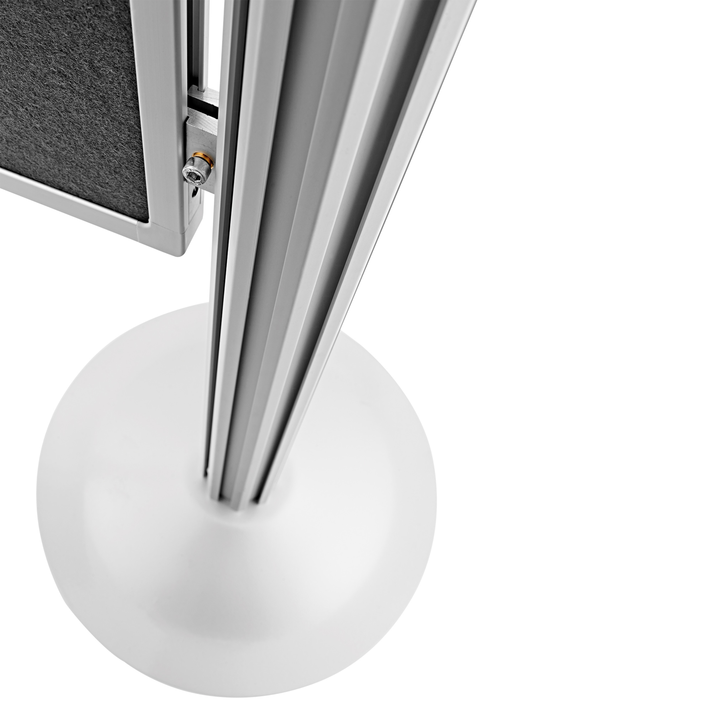 Das hochwertige Stellwand-System für eine kommunikative Raumgestaltung mit unbegrenzten Einsatz-Möglichkeiten. Doppelseitige Pinnwände zur Kommunikation, Präsentation + Information. Ideal für Empfangs-Bereiche, auf Messen + Ausstellungen. Auch als Raumteiler flexibel einsetzbar. Tafeln lassen sich auch im rechten Winkel oder kreisförmig sowie hoch und quer einhängen. Für unendliche Stell-Varianten.