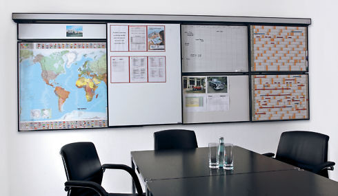 - Tafeln lassen sich somit sekundenschnell von der Wand in die Schiene ein- und wieder aushängen