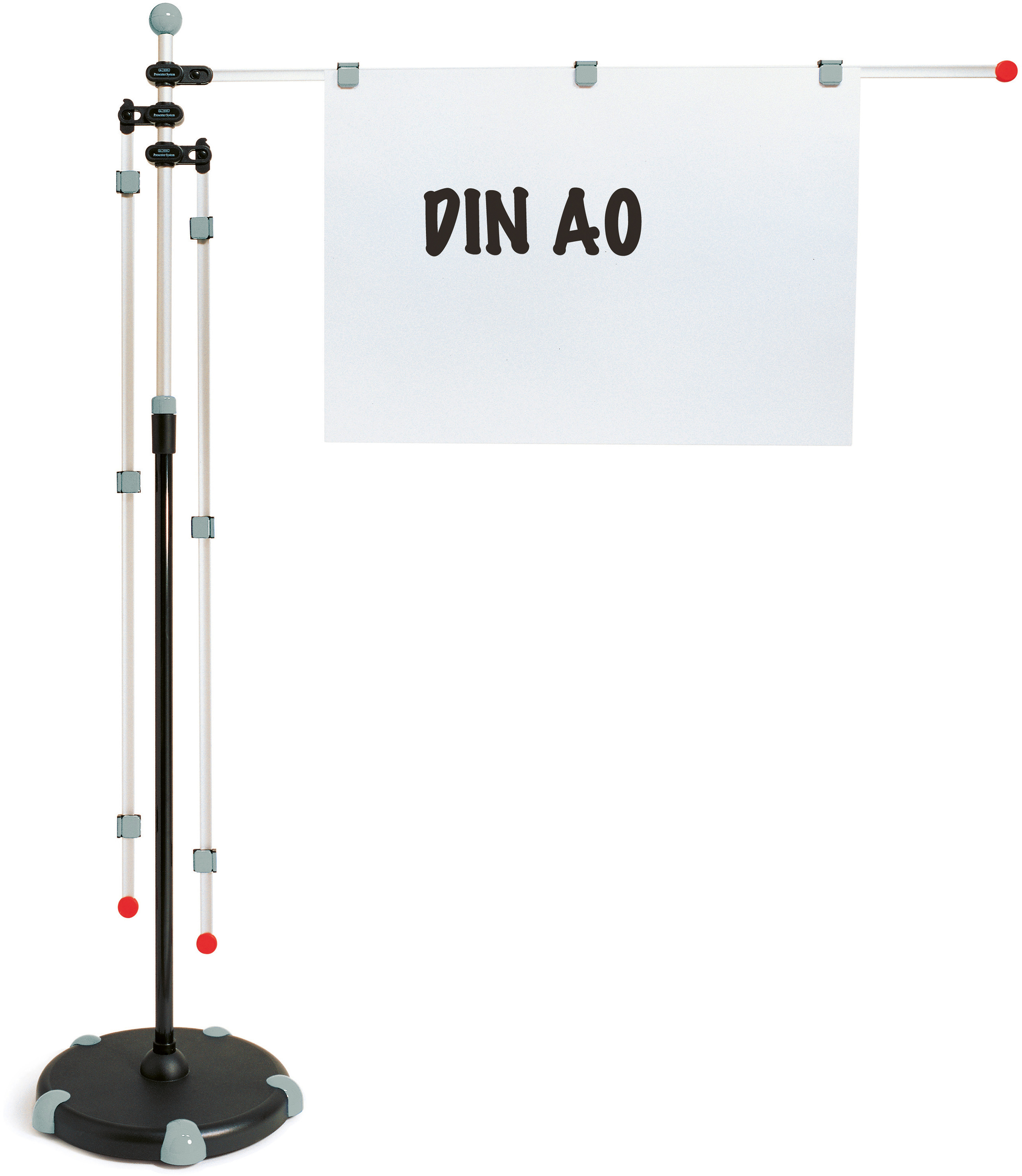 - 3 Alu-Schwenkarme A0 (132 cm) mit je 3 verschiebbaren Magnetclips, erweiterbar auf bis zu 6 Arme