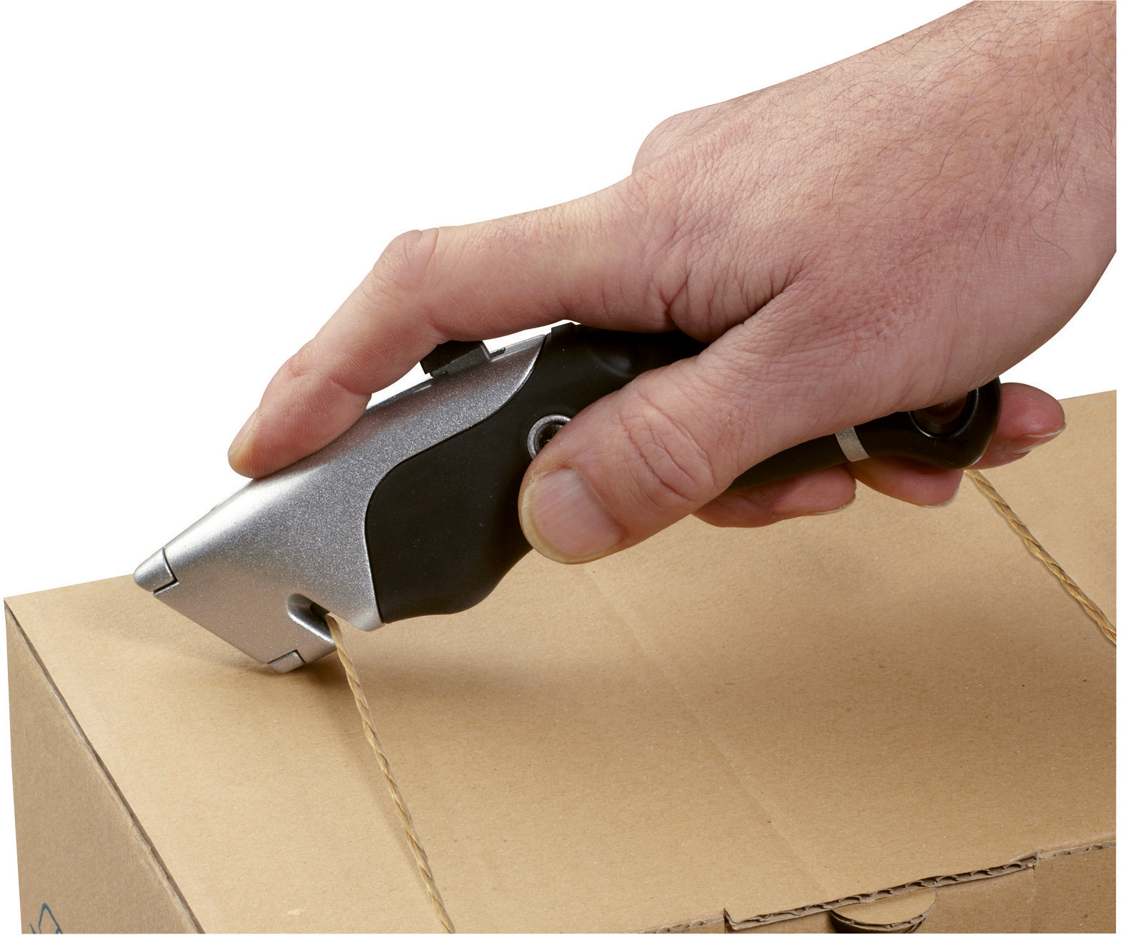 - Zerschneiden von Packschnüren mit zurückgezogener Klinge möglich