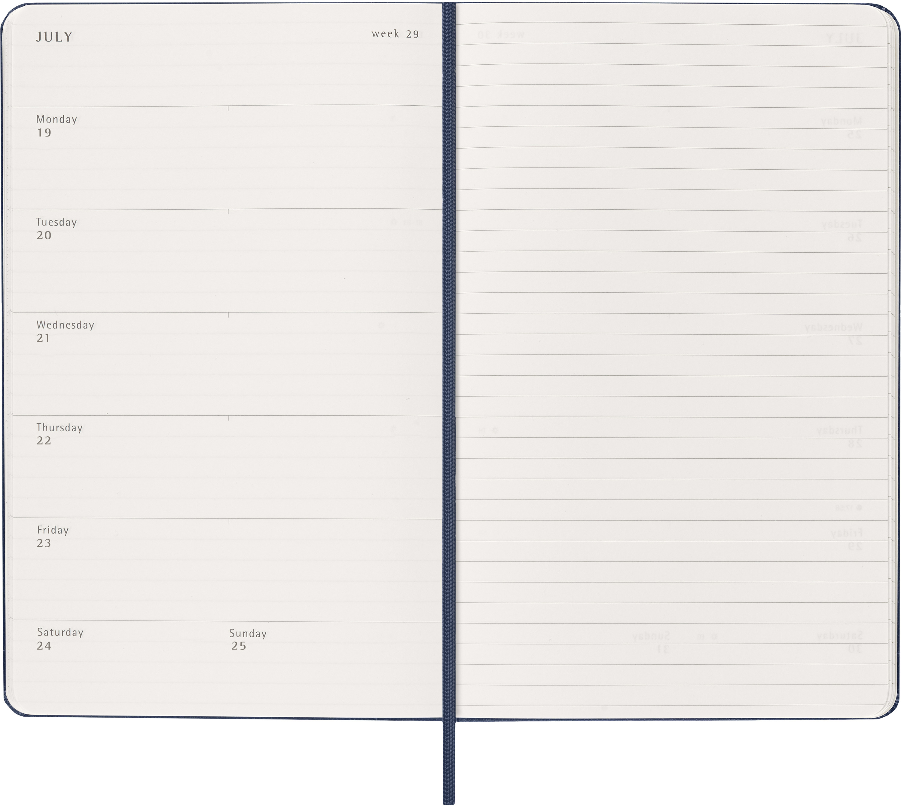 Der 18-Monate Wochen-Notizkalender von Moleskine geht von Juli bis Dezember. Mit den Wochenterminen auf der linken Seite und einer linierten rechten Seite mit Platz für Notizen und Ideen ist dieser beliebte Kalendertyp perfekt für Studenten, Lehrer und Geschäftsleute.