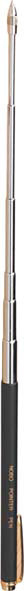 Der Teleskopzeigestab ist ein normaler Kugelschreiber mit blauer Schrift und schwarzem Gehäuse. Gleichzeitig kann er als Zeigestab genutzt werden. Die abschraubbare Kappe schützt die Stiftspitze. Ausziehbar bis 625 mm.