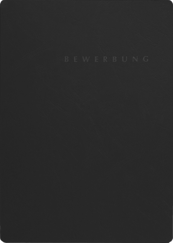 - Schriftzug „BEWERBUNG“ in silbernen Lettern auf dem Vorderdeckel