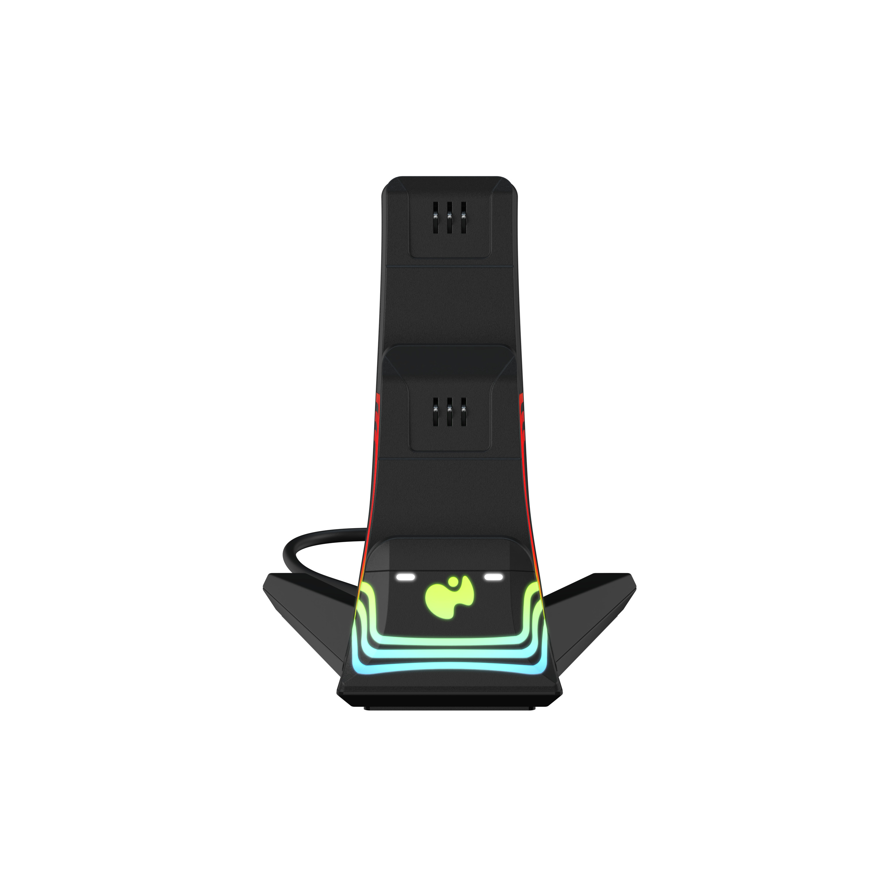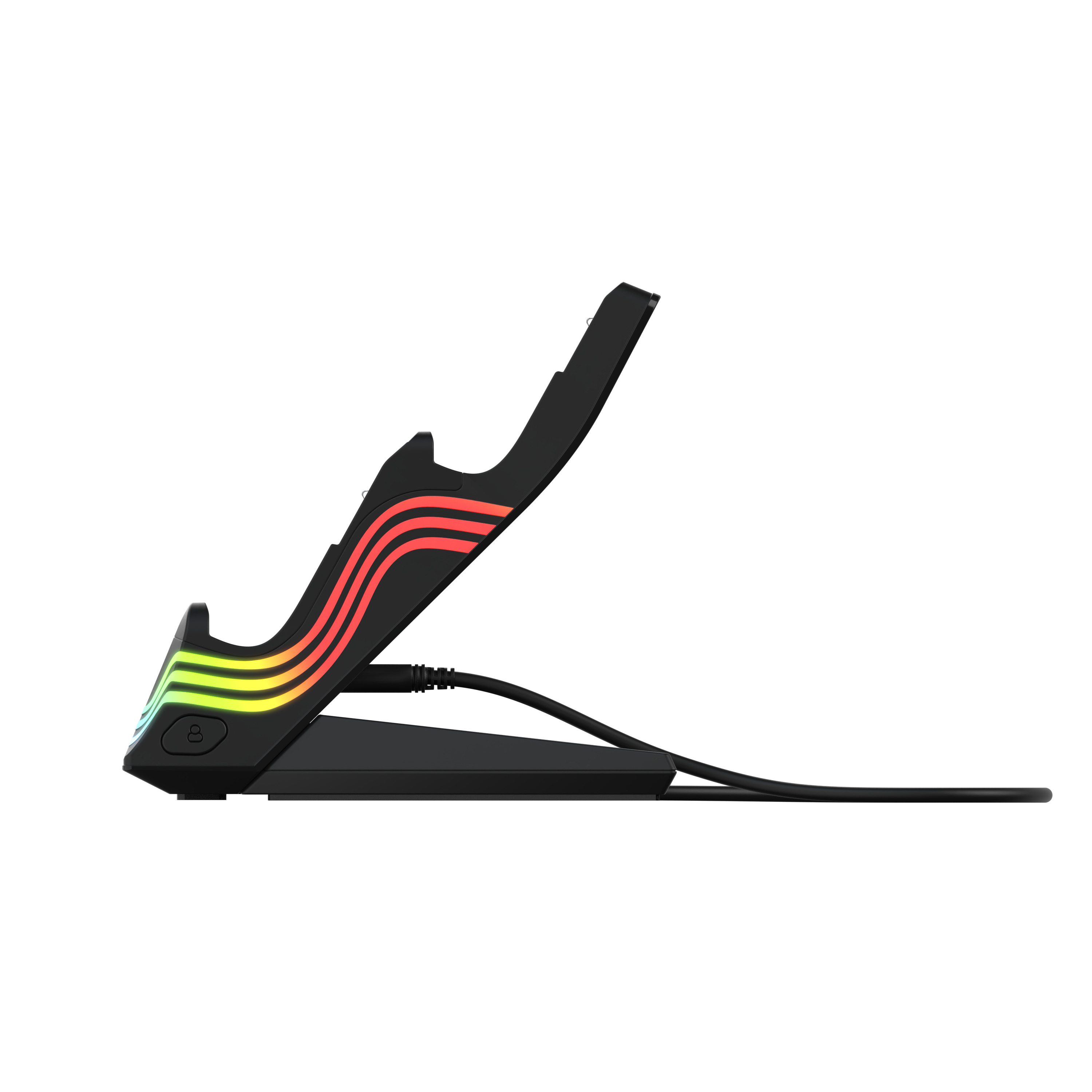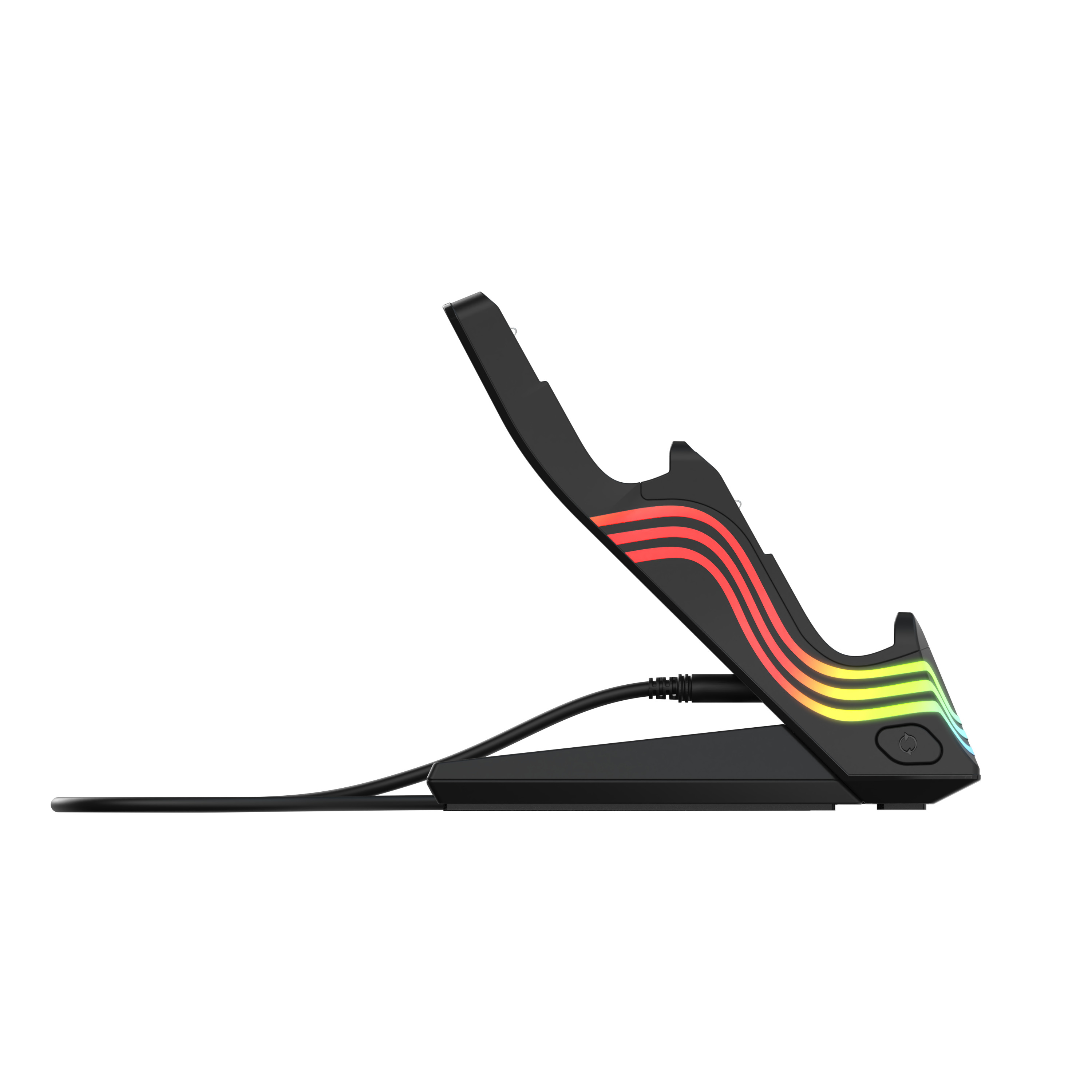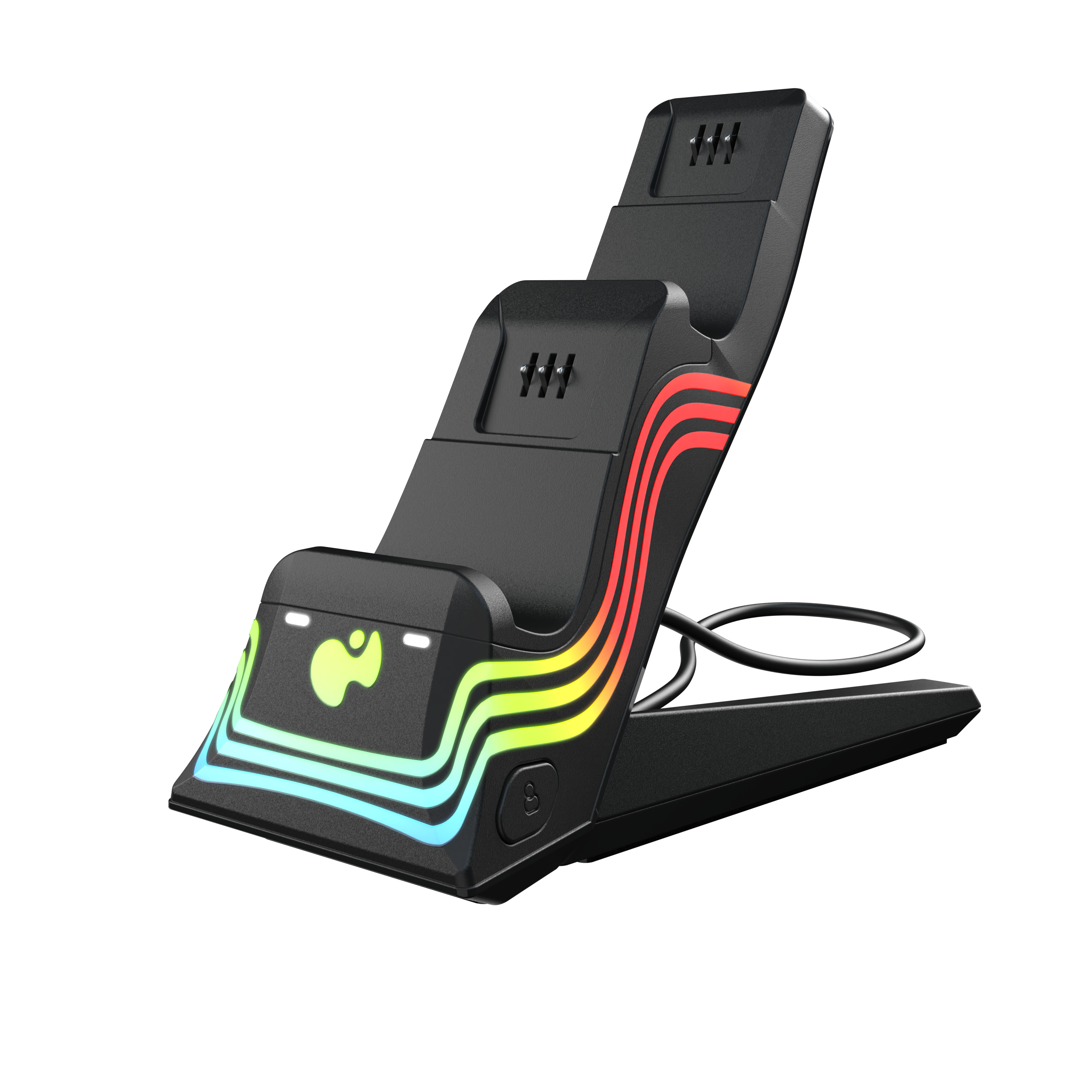 Schlage Wellen mit den leuchtenden Farben und Effekten des White Afterglow™ Wave Dual Charger für die Xbox. Dieses einzigartige Ladesystem verfügt über acht RGB-Zonen mit individuell gestaltbaren Optionen, mit denen du eine beeindruckende Präsentationsfläche für deine Xbox Wireless Controller schaffen kannst, während du sie auflädst. Mit der Profiltaste kannst du bis zu fünf Profile für Beleuchtungseffekte programmieren, die zu deiner Stimmung passen. Lade die kostenlose PDP Control Hub App herunter, um den Ladestatus zu überwachen, eigene Anzeigen und Profile zu erstellen, die Helligkeit einzustellen und vieles mehr. Verbinde dein Gerät einfach über den Bluetooth Sync Button, um auf die App zuzugreifen und Benachrichtigungen zu erhalten, wenn deine Controller aufgeladen und bereit sind, wieder in die Schlacht zu ziehen. Mit den LED-Ladeanzeigen an der Vorderseite des Ladegeräts kannst du ausserdem schnell den Ladestatus deines Controllers überprüfen. Installiere die 1100-mAh-Akkus und Klappen, um zwei Controller gleichzeitig in nur 3 Stunden aufzuladen, für bis zu 40 Stunden Spielzeit mit einer einzigen Ladung. Erlebe mit dem offiziell lizenzierten Afterglow Wave Dual Charger für Xbox eine ganz neue Art des Aufladens.