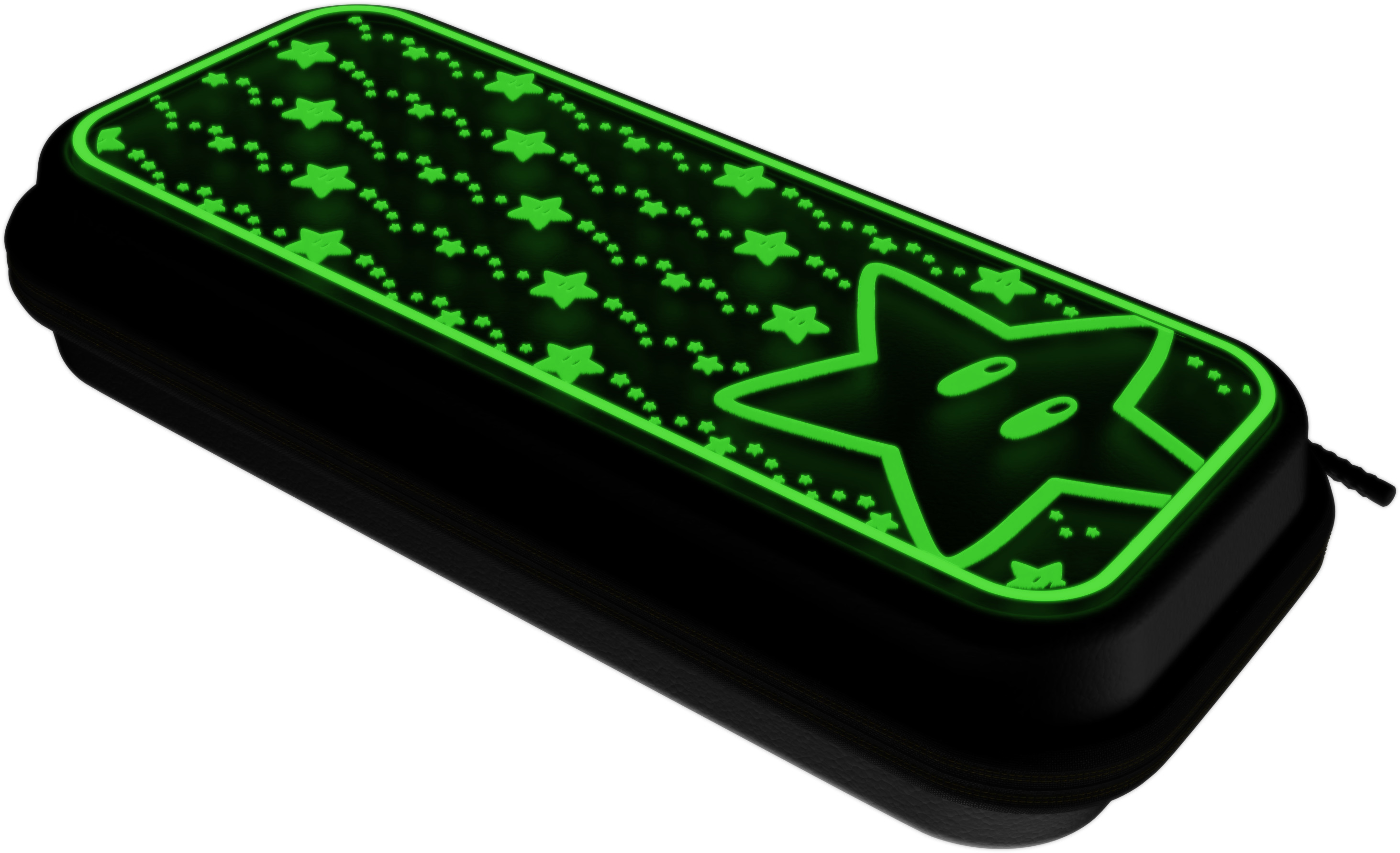 Das auffällige Travel Case Plus GLOW verfügt über ein einzigartiges, geformtes 3D-Design, das im Dunkeln leuchtet, nachdem es dem Licht ausgesetzt wurde, um Ihr Spiel zu verstärken. In dieser robusten, kompatiblen Tasche kann jedes Gerät der Nintendo Switch™-Familie aufbewahrt und geschützt werden. Dank des praktischen Tragegriffs können Sie Ihre Spiele ganz einfach überallhin mitnehmen. Vergiss nie wieder deine Ohrhörer oder Lieblingsspiele zu Hause, denn die grossen und kleinen Fächer sind perfekt für die Aufbewahrung deines wichtigen Gaming-Zubehörs. Mit dem integrierten Gaming-Ständer kannst du deine Nintendo Switch auch unterwegs stützen und spielen. Mit dem offiziell lizenzierten Travel Case Plus GLOW bist du bestens gerüstet für die Aufbewahrung und den Schutz deines Geräts.