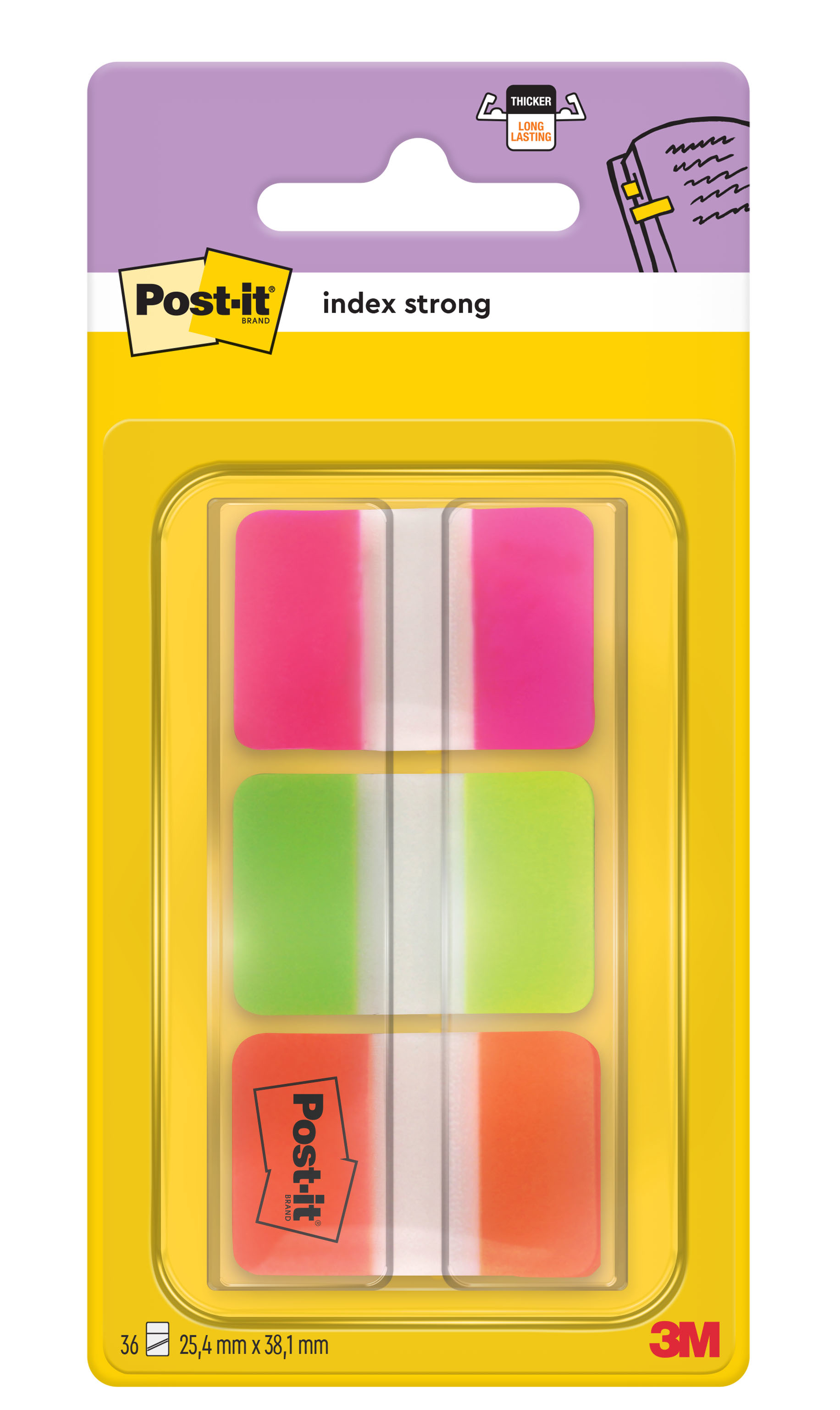POST-IT Index Strong 25,4x38mm 686-PGOT 3-farbig/3x12 Tabs