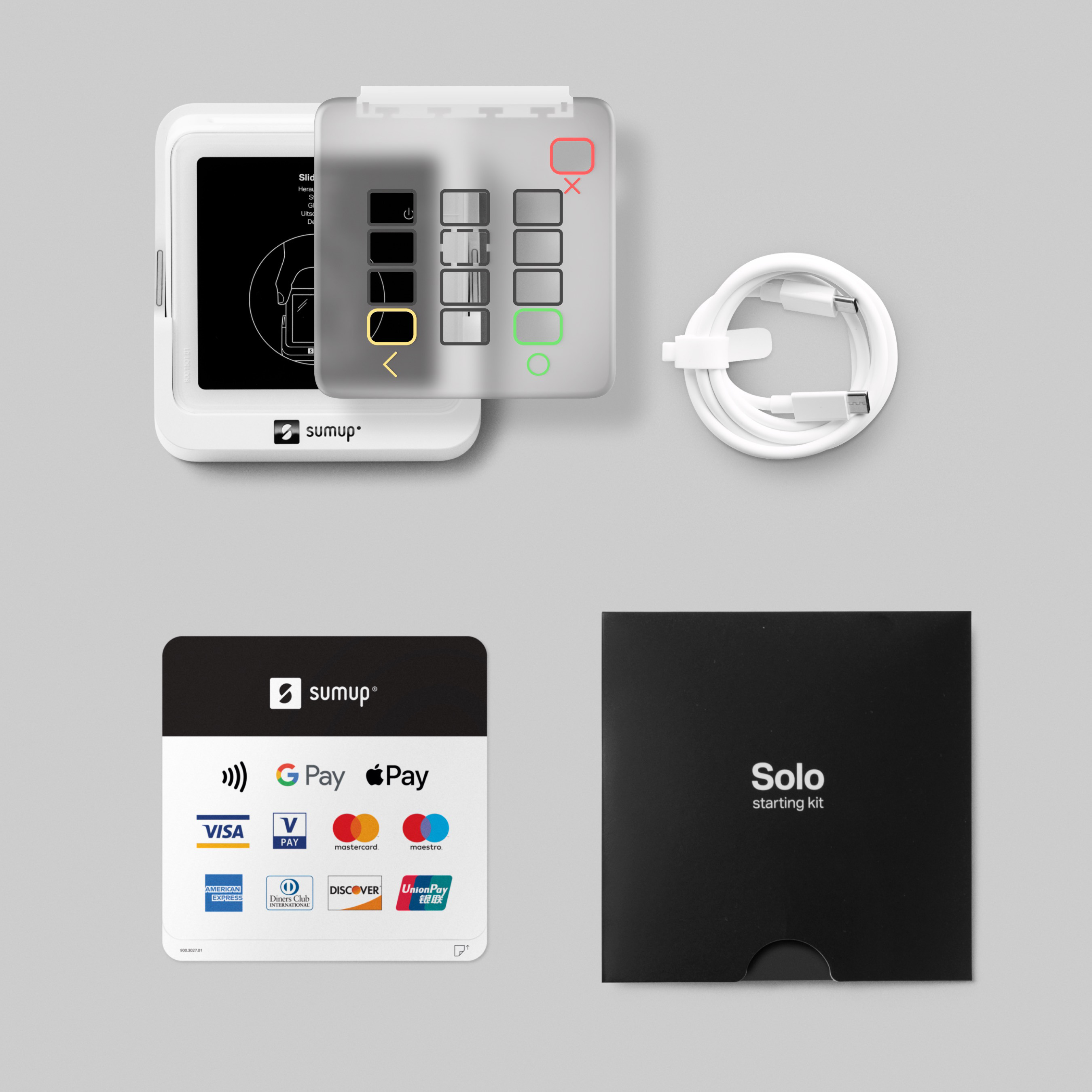 Mit dem neuen SumUp Solo Kartenlesegerät bringen Sie Ihr Geschäft voran. Volle Flexibilität intuitive Benutzeroberfläche, immer up to date. Mobiles Kartenterminal zum bargeldlosen Bezahlen mit EC Karte, Kreditkarte, Apple & Google Pay und mehr. Mit seinem intuitiven Touchscreen-Display sorgt das SumUp Solo für ein nahtloses Zahlungserlebnis. Dank eingebaueter SIM-Karte mit unbegrenztem Datenvolumen und WLAN Zugang kann das SumUp Solo Kartenlesegerät überall mit hingenommen werden und ist flexibel einsetzbar. Dabei entstehen für den Nutzer keine Zusatzkosten. Die mitgelieferte Ladestation passt perfekt auf jeden Tresen und sorgt sorgt dafür, dass das Solo immer aufgeladen ist. Dank automatischer Software-Updates ist das SumUp Solo immer auf dem aktuellsten Stand. Keine monantlichen Fixkosten, keine Vertragsbindung. Sie bezahlen nur, wenn Sie bezahlt werden: 1,50% Gebühren für Zahlungen mit EC Karte und 2,50% für kontaktlose oder Kreditkarten-Zahlungen.