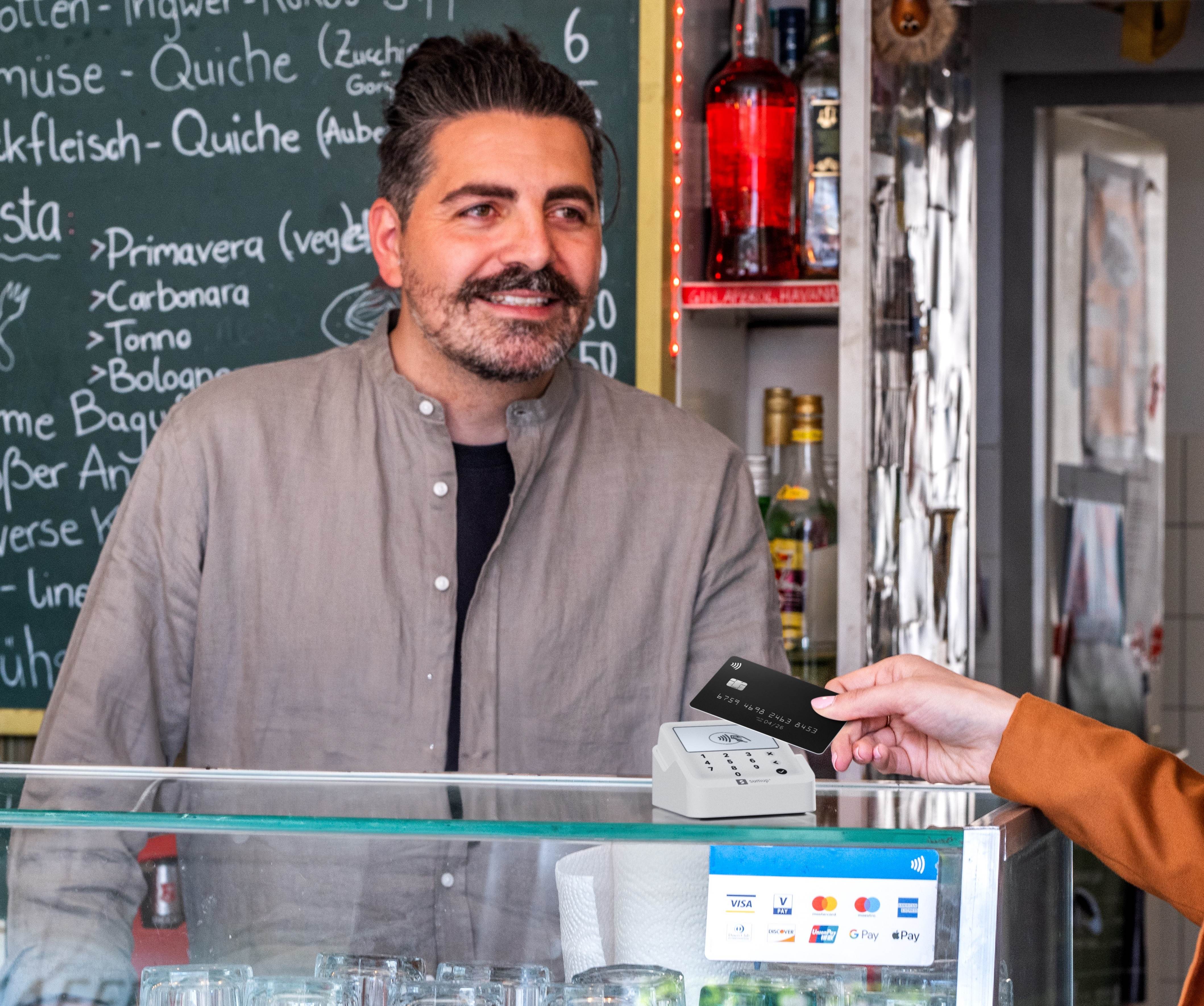 EINFACH KARTENZAHLUNGEN ANNEHMEN. Bieten Sie Ihren Kunden den besten Service - auch beim Bezahlen. Akzeptieren Sie alle gängigen EC- und Kreditkarten. Kontaktlos, Apple Pay und Google Pay. In wenigen Minuten mit SumUp starten. Terminal via Bluetooth verbinden und Zahlungen, mit Ihrem Smartphone und der SumUp App annehmen. Keine monatlichen Fixkosten und keine Vertragsbindung. Sie zahlen nur, wenn Sie bezahlt werden. 1,5% (EC) und 2,5 % (KC) pro Transaktion, unabhängig von der Karte. Sie erhalten zusätzlich kostenfreien Telefon- und E-Mail-Support. Schnelle und direkte Auszahlung: Die Auszahlung Ihrer Umsätze erfolgt innerhalb von 1-3 Tagen auf Ihr Bankkonto. HIGHLIGHTS PRODUKT. Langlebiges Design: Mit dem robusten Bildschirm aus Corning Gorilla-Glas und der strapazierfähigen Hardware sind Sie auf Ihren geschäftigen Arbeitstag bestens vorbereitet. Bluetooth-Verbindung: Verbinden Sie Ihr Kartenterminal mit Ihrem Smartphone oder Tablet per Bluetooth, um Zahlungen im Geschäft oder mobile Zahlungen über die kostenlose SumUp App entgegenzunehmen. Stylisches Display: Die Ladestation dient gleichzeitig als Aufsteller des Kartenterminals für die Ladentheke, damit Ihre Kundschaft gleich erkennt, dass Ihr Geschäft Kartenzahlungen annimmt. Lange Akkulaufzeit: Dank seiner Fähigkeit, über 1000 Zahlungen mit einer einzigen Akkuladung zu verarbeiten, sind Sie jederzeit einsatzbereit. Benutzerfreundlich: Behalten Sie Ihre Umsätze im Auge, stellen Sie Rückerstattungen aus und verfolgen Sie Ihre Performance mit der kostenlosen SumUp App. Ladestation: Mit dieser eleganten Ladestation bleibt Ihr Solo Lite Kartenterminal voll aufgeladen und ist jederzeit einsatzbereit, um Zahlungen anzunehmen.