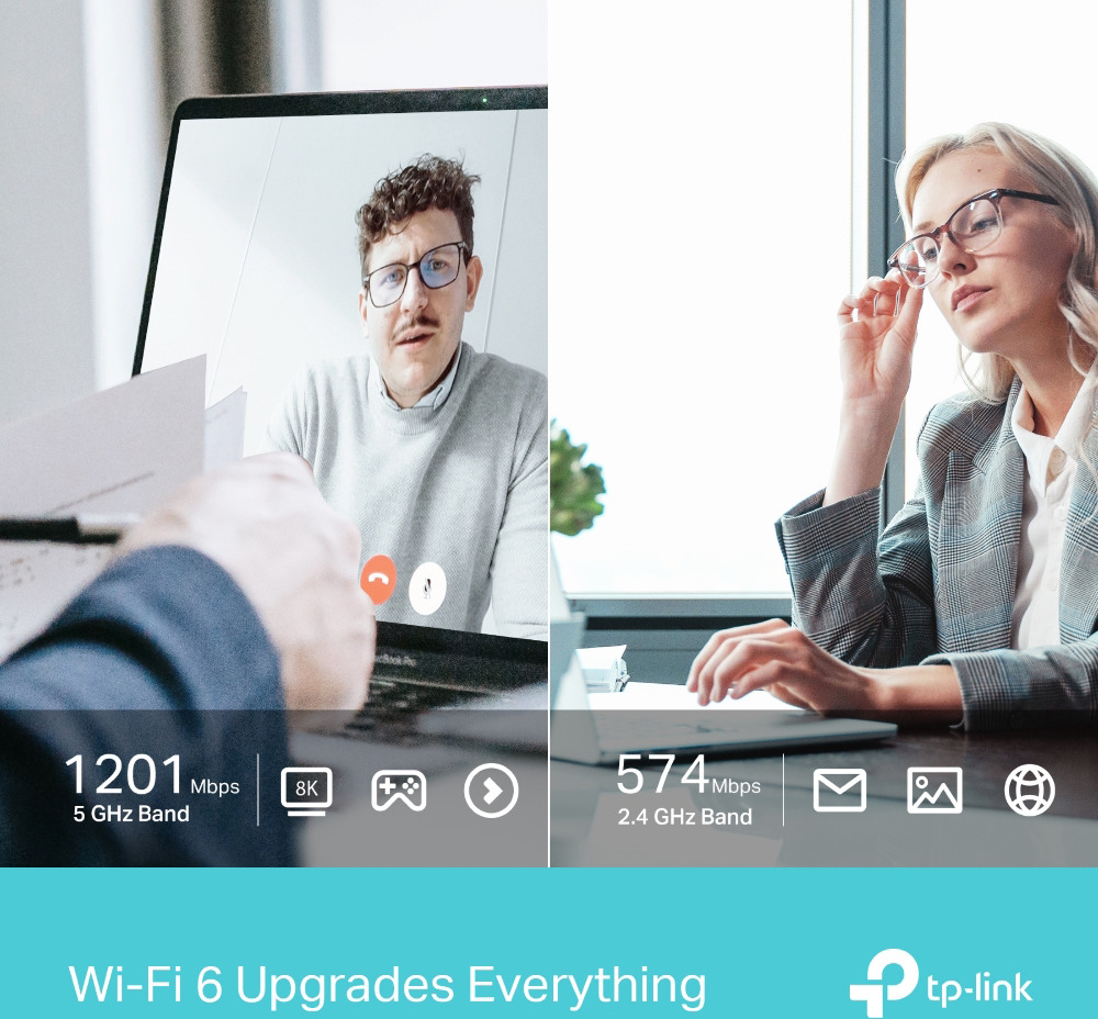 - Fast WiFi 6 - Durchbrechen Sie die Gigabit-Grenze mit Geschwindigkeiten von bis zu 1201 Mbps (5 GHz) + 574 Mbps (2,4 GHz).