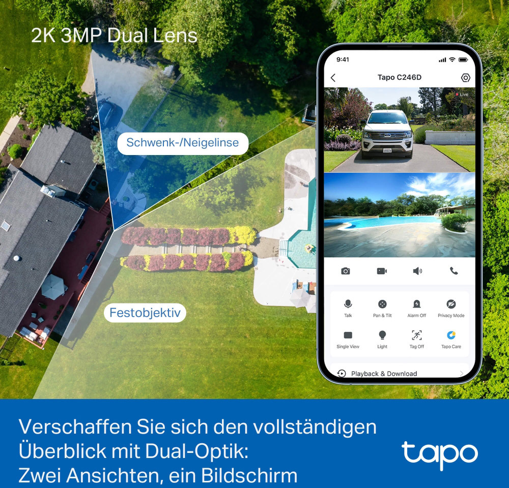 Produktinformationen "TP-LINK Indoor/Outdoor Security Cam Tapo C246D Pan/Tilt, Dual Lens"