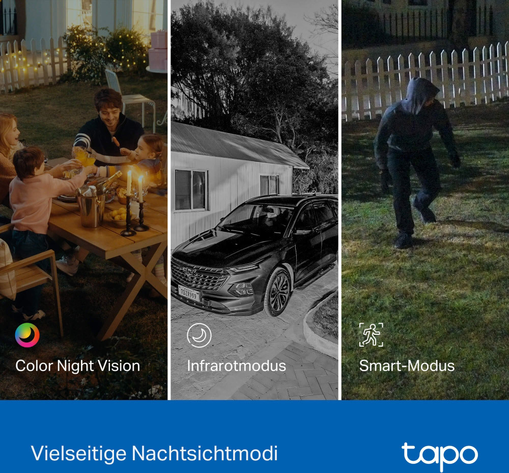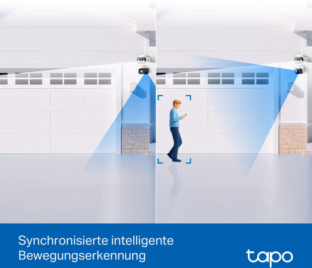 Tapo C246D – Doppelte Sicht, doppelte Sicherheit. Erleben Sie umfassende Überwachung mit der Tapo C246D – der intelligenten Schwenk-/Neige-Sicherheitskamera mit zwei integrierten 2K 3MP Objektiven. Ob im Wohnzimmer, im Garten oder vor dem Hauseingang: Die Kombination aus 125° Weitwinkel-Objektiv und einem 6mm Teleobjektiv mit bis zu 10,8× digitalem Zoom sorgt für volle Übersicht und gestochen scharfe Details – und das gleichzeitig auf einem geteilten Bildschirm. Durch das innovative synchronisierte Smart Tracking erkennt das Weitwinkelobjektiv automatisch Bewegungen – und das Teleobjektiv folgt dem Geschehen dynamisch per Schwenk- und Neigefunktion. Mit nur einem Fingertipp aktivieren Sie den intelligenten Fokus: Wählen Sie einen Bereich im Weitwinkelbild, und die Kamera richtet den Zoom automatisch auf den gewünschten Punkt. Ganz gleich, ob Tag oder Nacht: Dank intelligenter Nachtsichtmodi – wahlweise in Farbe mit Spotlight, diskretem Infrarot oder KI-gesteuertem Smart-Modus – behalten Sie jederzeit alles im Blick. Die Kamera erkennt Personen, Fahrzeuge, Haustiere und sogar Babygeschrei zuverlässig – ganz ohne Abo oder Zusatzkosten. Die wetterfeste IP65-Zertifizierung macht die Tapo C246D zum flexiblen Sicherheitspartner für den Innen- und Außeneinsatz. Die Kamera kann stehend, kopfüber, an Wand, Decke oder Mast montiert werden – so passt sie sich optimal Ihrer Umgebung an. Dank lokaler Speicherung auf microSD-Karte (bis 512 GB) oder optionaler Tapo Care Cloud, zwei-Wege-Audio, Smart-Home-Integration mit Alexa, Google Home und SmartThings sowie vordefinierbaren Patrouillenrouten mit bis zu acht Beobachtungspunkten ist die Tapo C246D nicht nur eine Kamera, sondern ein intelligentes Sicherheitskonzept für Ihr Zuhause – klar, flexibel und zuverlässig.