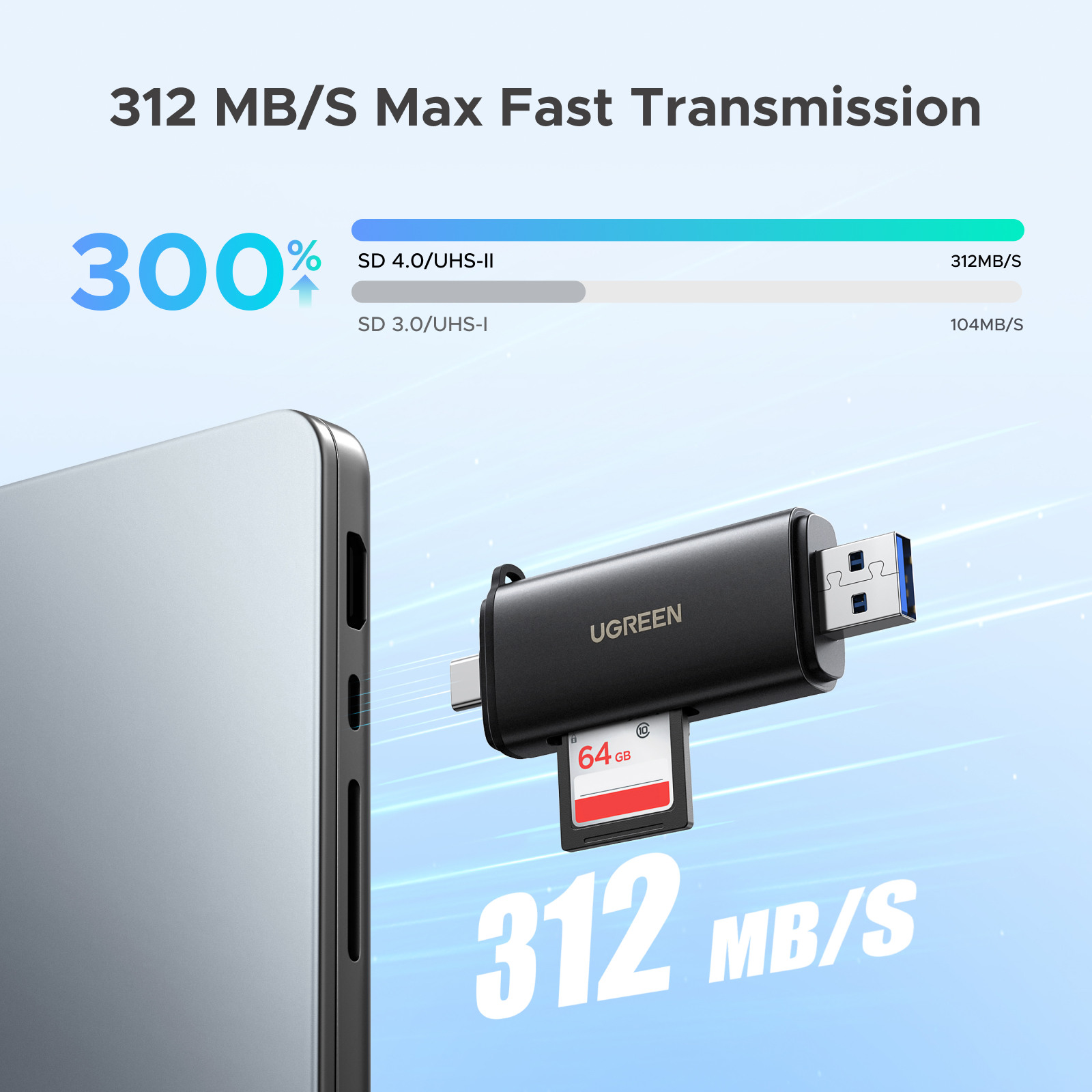 - Ultraschnelle Datenübertragung: Dank des leistungsstarken Chipsatzes ermöglicht der Micro-SD-Kartenleser USB-C eine Datenübertragung mit hoher Geschwindigkeit von bis zu 5 Gbit/s, insbesondere in Kombination mit UHS-II-Karten, die Geschwindigkeit von bis zu 312 MB/s erreichen.