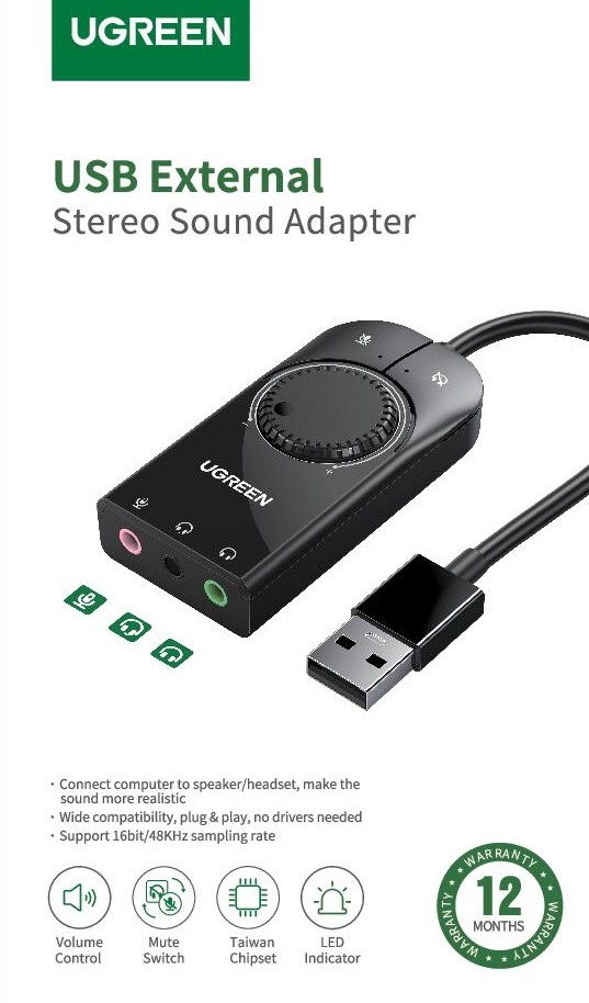 Produktinformationen "UGREEN External USB Sound Adapter 40964 15cm, Black"