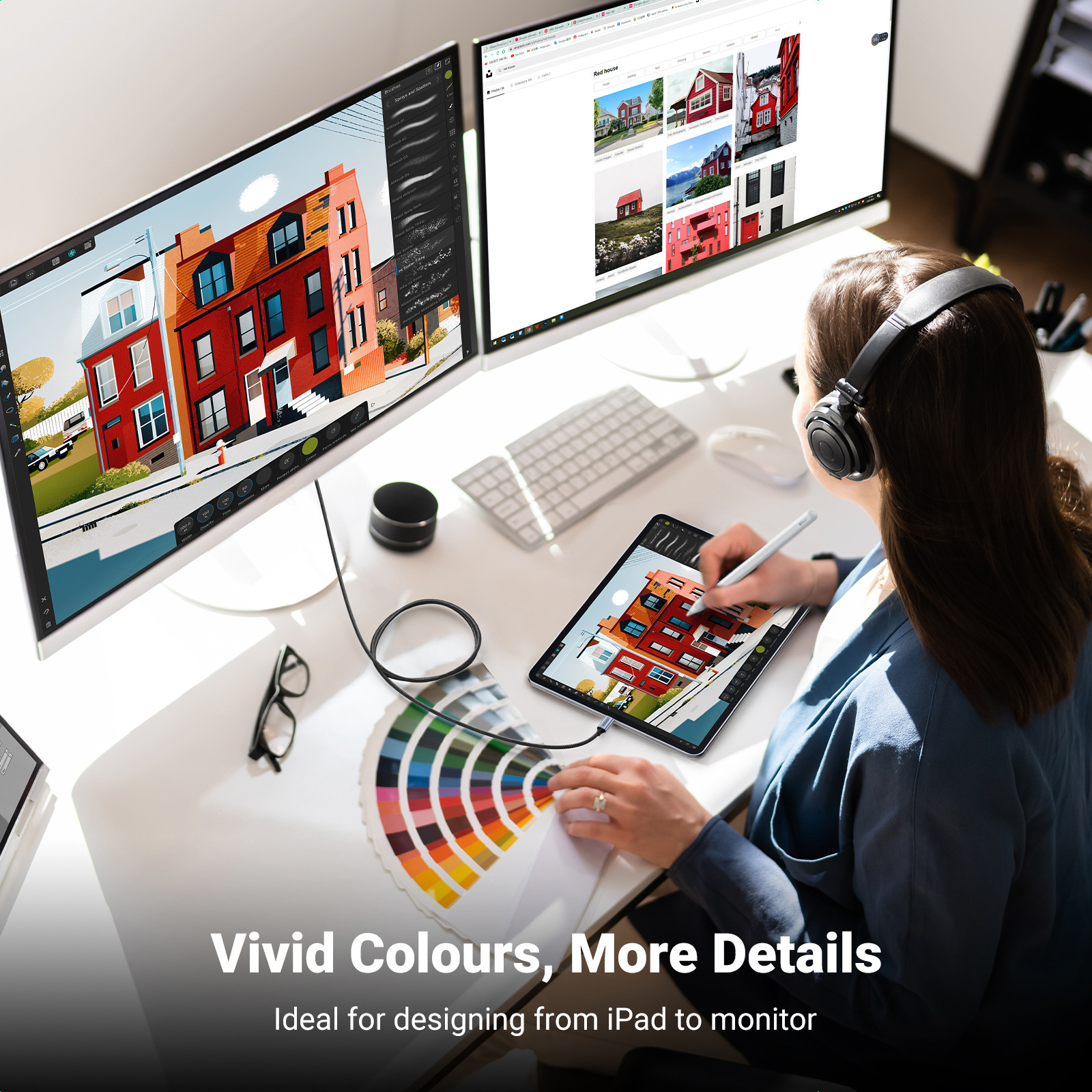 - Lebendige 4K@60Hz Auflösung, dieses USB-C-zu-HDMI-Kabel unterstützt 4K@60Hz und ist abwärtskompatibel mit 2K@120Hz und 1080P, die Audio- und Videosignale synchron übertragen können. Der USB-C-Anschluss unterstützt DP1.2/HDCP 2.2, der HDMI-Anschluss unterstützt 3D, HDR, HDCP 2.2/1.4. Hinweis: Bitte stellen Sie sicher, dass sowohl Ihr Eingangs- als auch Ihr Ausgangsgerät 4K@60Hz unterstützen.